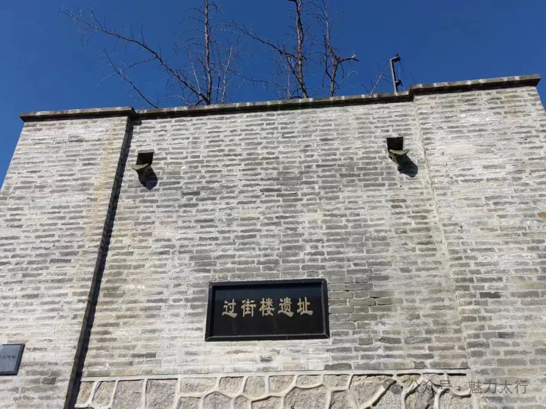 磨石口的过街楼是选址修复建筑的,是青砖和石块垒砌而成。抬头仰望,在蓝天的映衬下,别有一番味道。