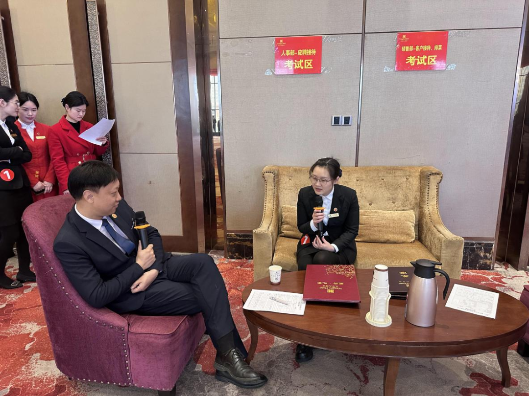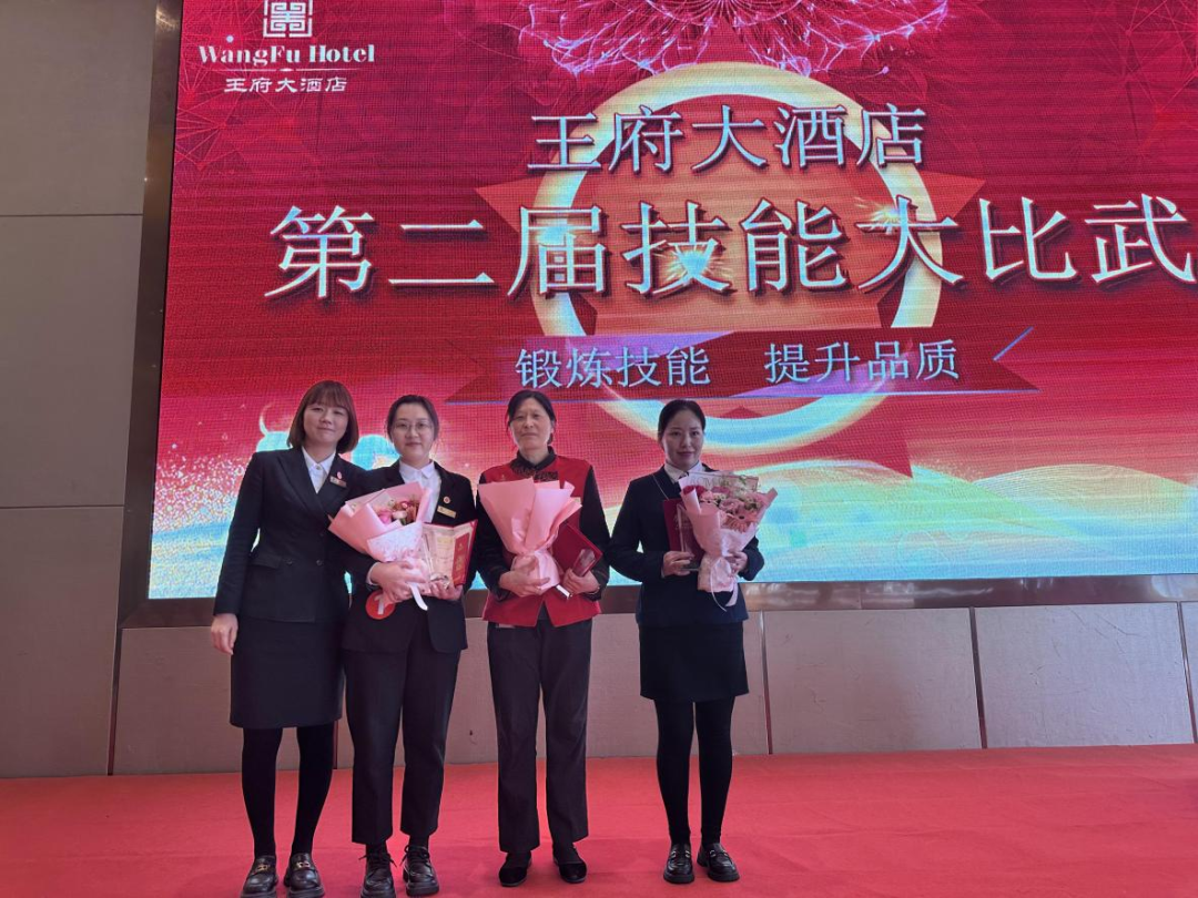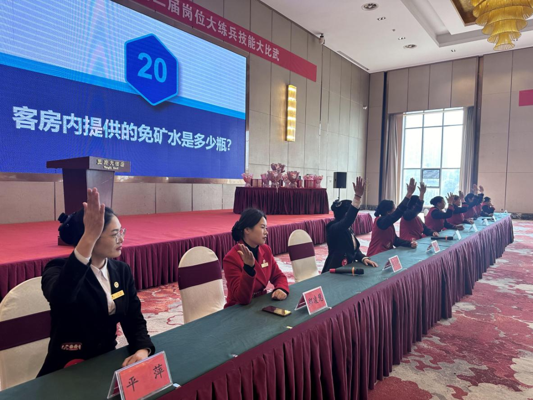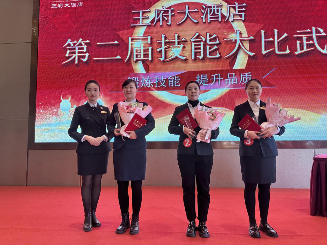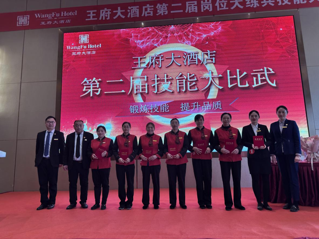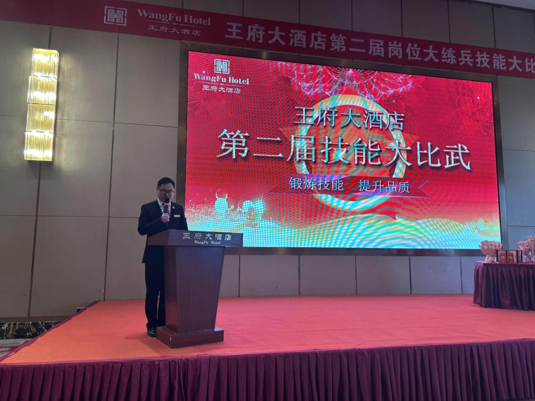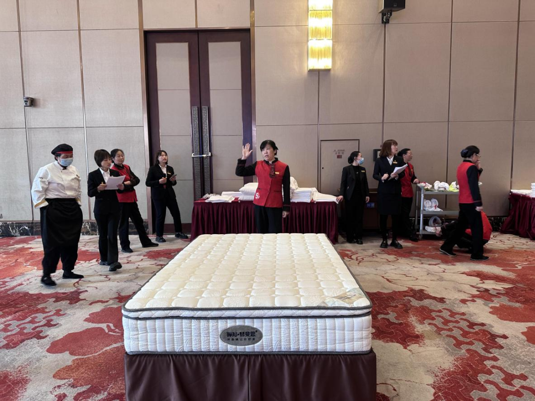 2024年3月7日,王府大酒店第二届技能大比武活动在二楼宴会厅举行,大房务代表队、大餐饮代表队、大后勤代表队三个队伍同台竞技,比拼专业技能。此次技能比赛活动旨在检验酒店员工岗位专业知识和岗位服务技能,从而提升员工自身工作能力、提高对客服务质量和水准,展现酒店服务风采。
