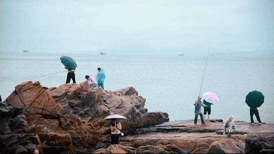 看到礁石上络绎不绝的海钓爱好者