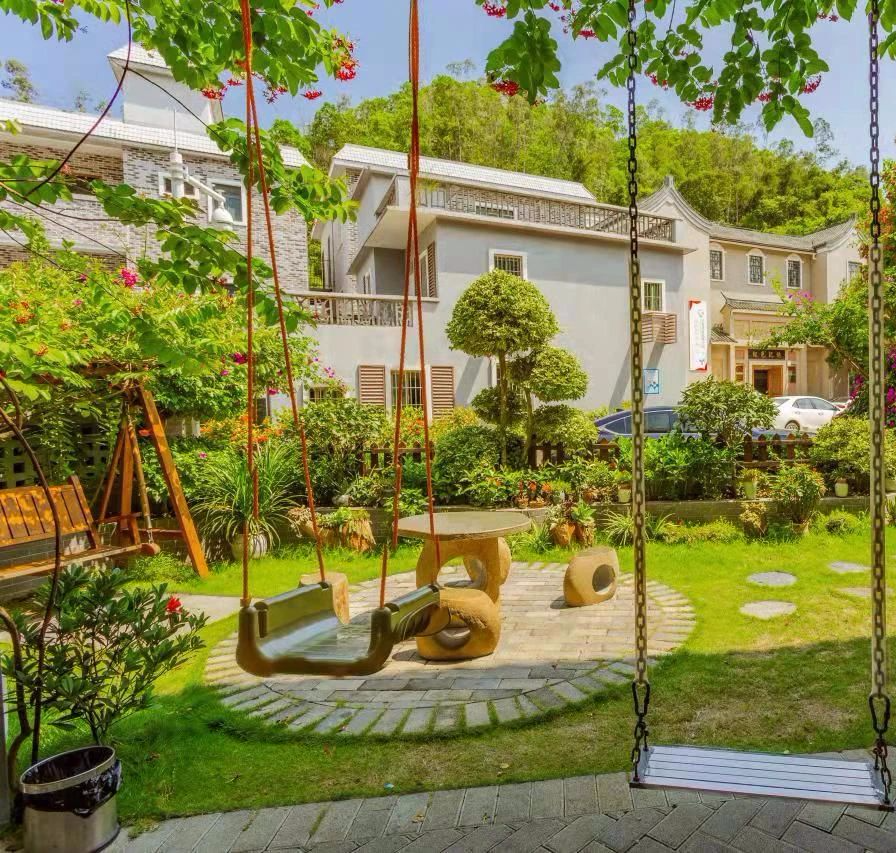 民宿里小小的绿意葱葱的院落里