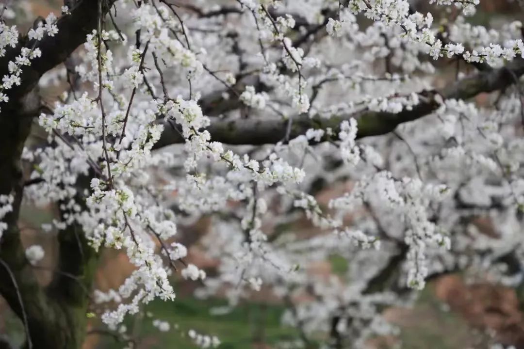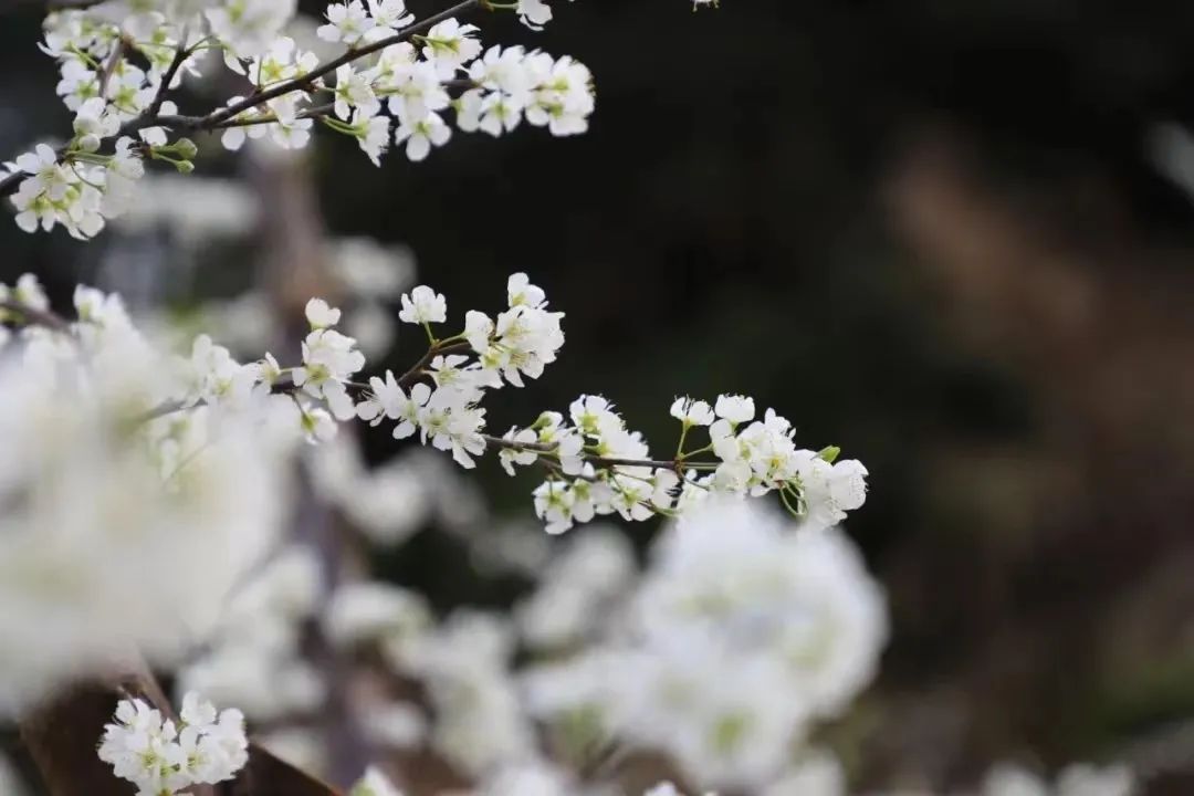 宛如青墨勾勒的远山背景下,那漫山遍野的李花如繁星点点,热烈地绽放在层叠翠绿的梯田间,犹如白云悠悠漫游于林间仙境,共同构成了一幅“远峰融入春色里,繁花更胜雪漫天”的壮美画卷。