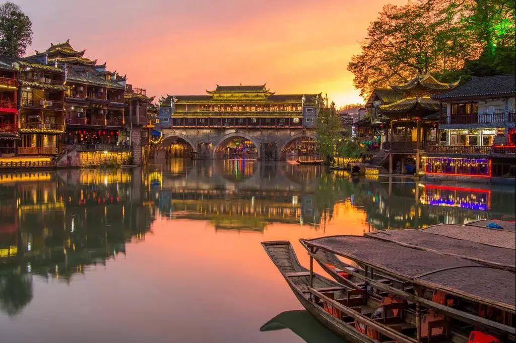 后乘车前往美丽小城【凤凰古城/接驳车已含】沱江两岸欣赏【湘见沱江·七重水幕灯光秀】是一次光影科技与苗族文化的完美融合,是中国首个以苗族文化为
