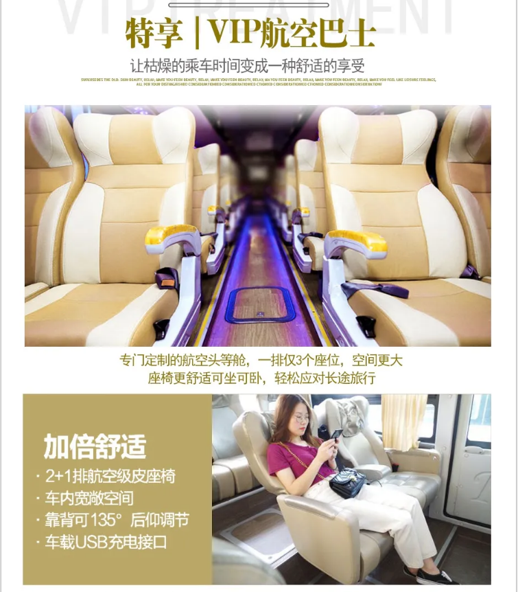 6. 全新VIP豪华保姆式旅游大巴,飞机头等舱2+1特制座椅