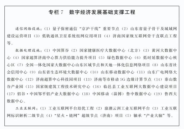 ▶实施新型数据中心建设行动,支持济南市打造低时延数据中心核心区,推动淄博市临淄区、肥城市、禹城市、齐河县、邹平市、聊城市茌平区、东阿县等建成一批面向垂直应用领域的数据中心,争取布局建设2—3个工业大数据省级区域中心和行业中心。