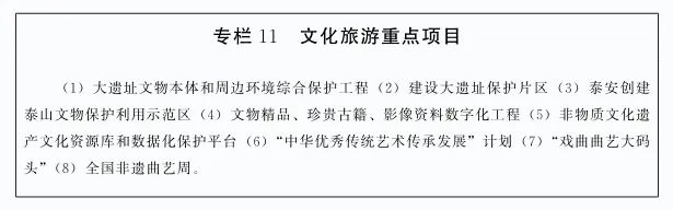▶构建全域旅游格局。依托济南、泰安等地文物资源,建设区域性和县域文物主题游径。建设泰山文化传承发展示范区,加强泰山石刻保护利用,推进大汶口考古遗址公园、泰山博物院建设。