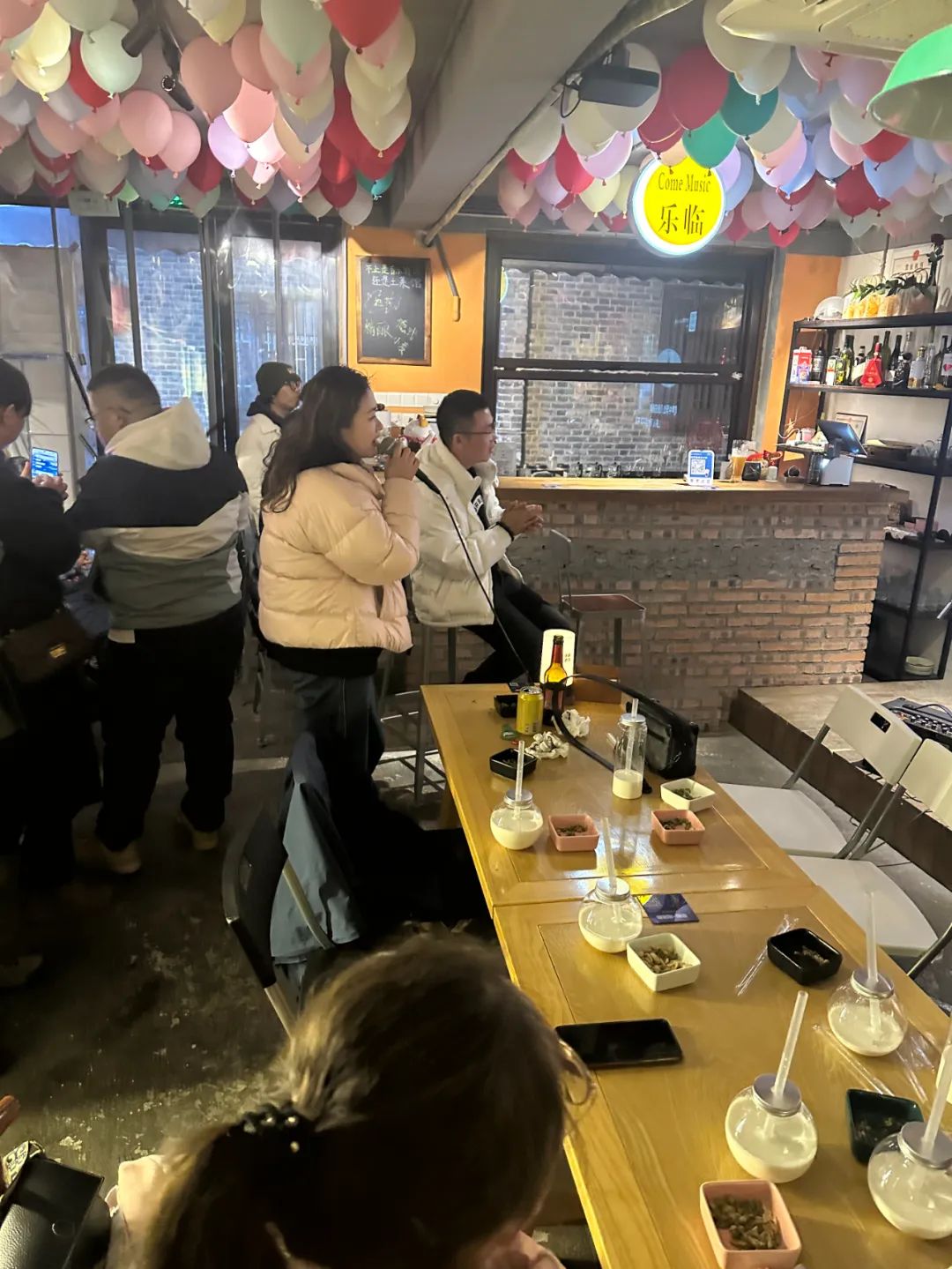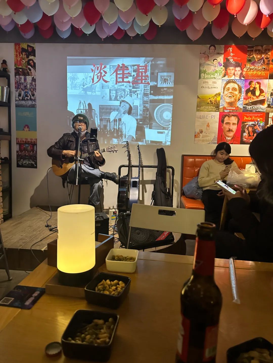 放完烟花,我们前往队友许老师开的小酒馆,开启一场音乐之夜。我们到的时候,主唱淡老师,许老师早就在等我们了,