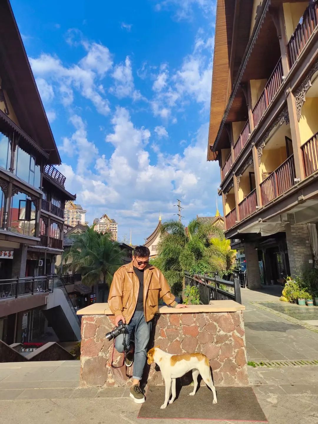 村口的鱼塘清凌凌泛着晚霞的红光,成排的椰子树没有梧桐遮天蔽日的架势,但依旧像个守卫者站得笔直,佛寺是庄严而古旧的,风格独特的傣家竹楼里围坐着三三两两唠嗑的人。不远处,高大挺拔的菩提树下有风吹过女生白色的长裙,是现实版的《去有风的地方》。镜头再往前,是一片葱翠的绿林,绿林下有一座与这里格格不入的白色房子。