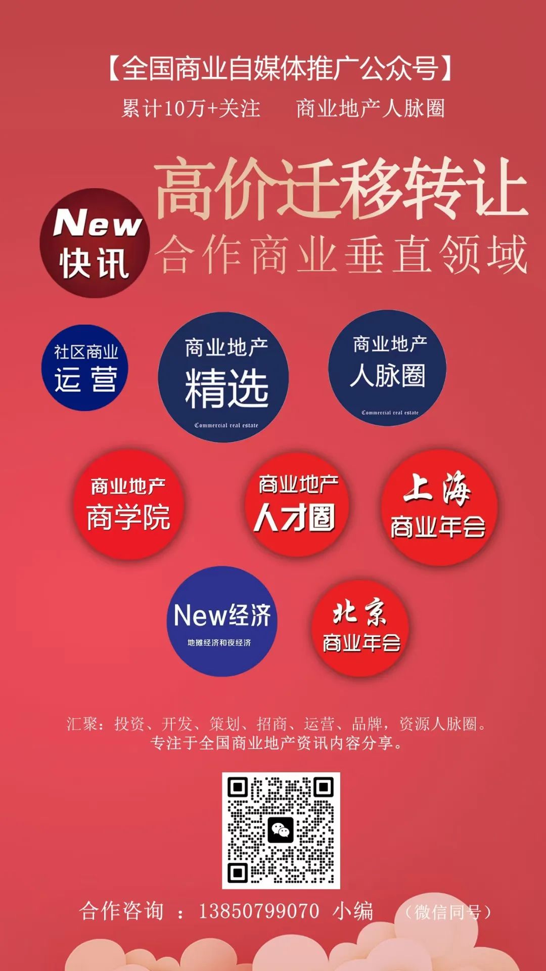 【全国大V号】累计10万+商业地产人脉圈,汇聚:投资、开发、策划、招商、运营、品牌,资源人脉圈。专注于全国商业地产资讯内容分享。投稿,推广合作加微信:15905095171、 13850799070