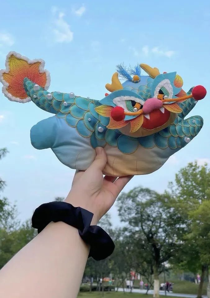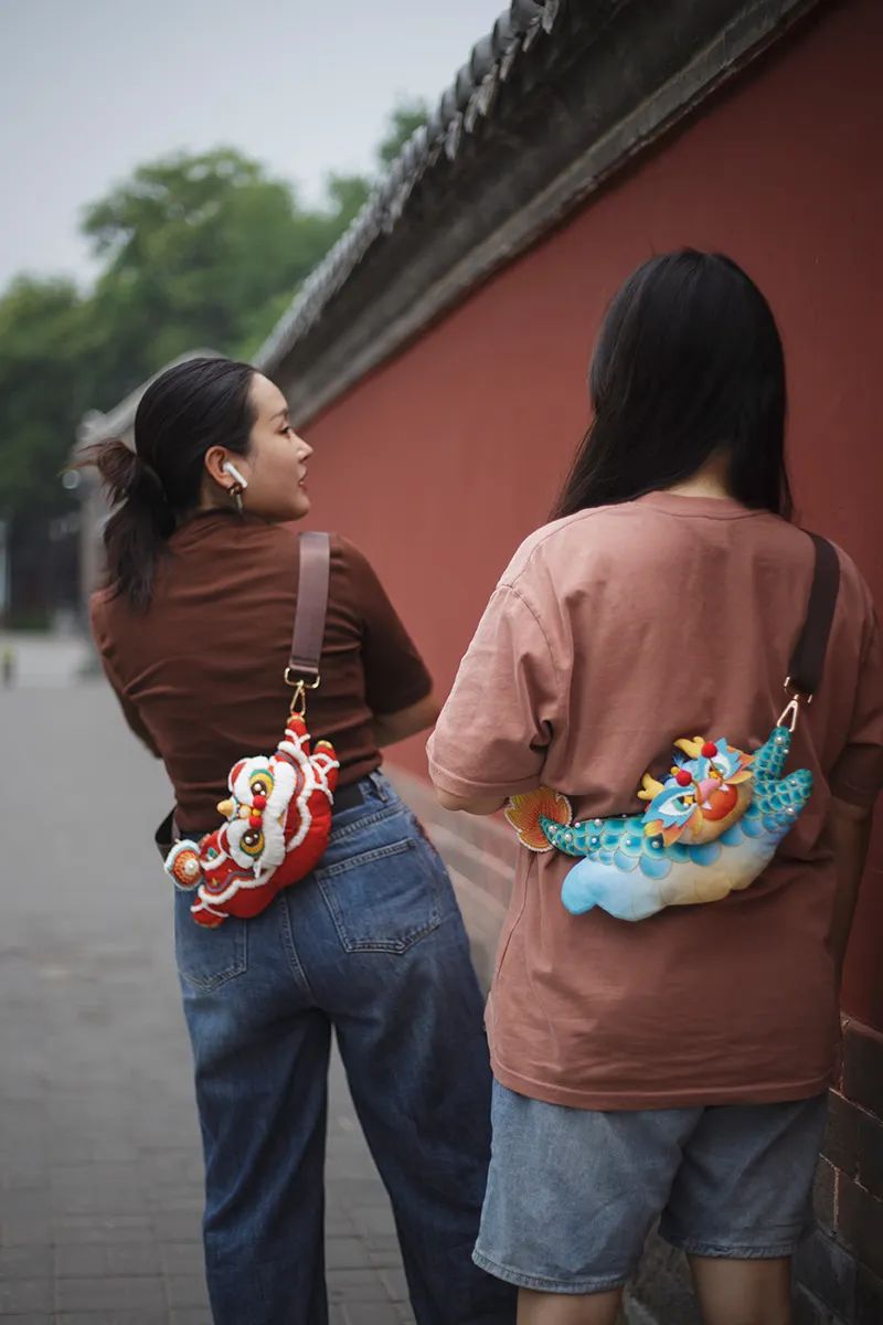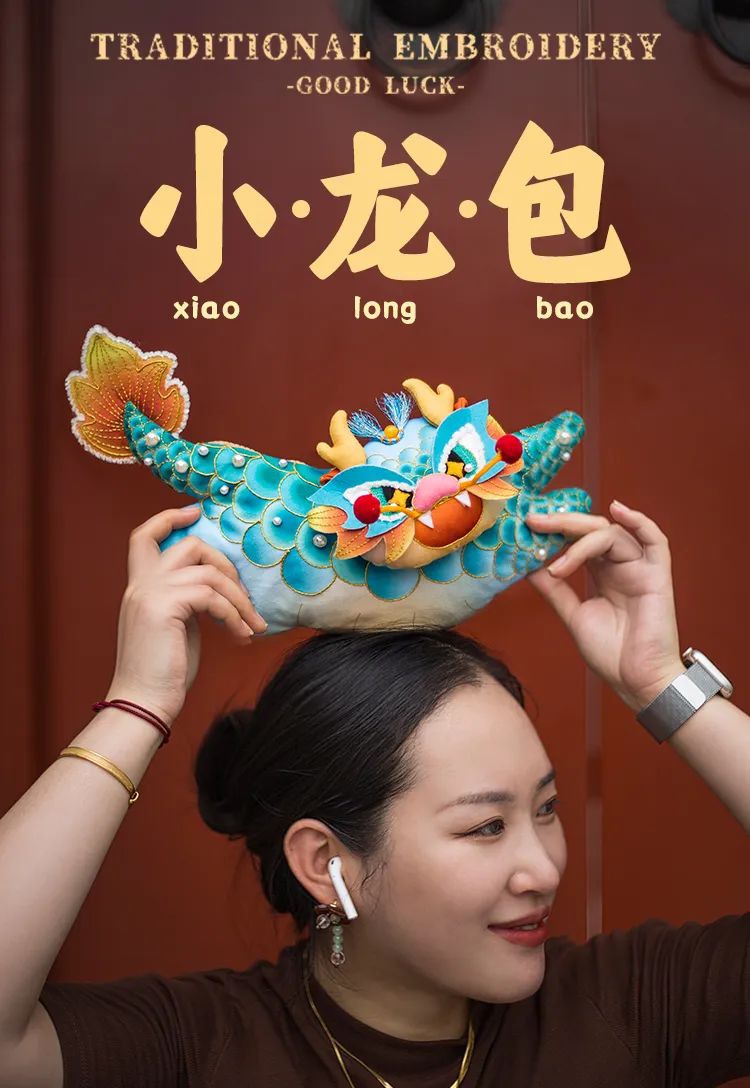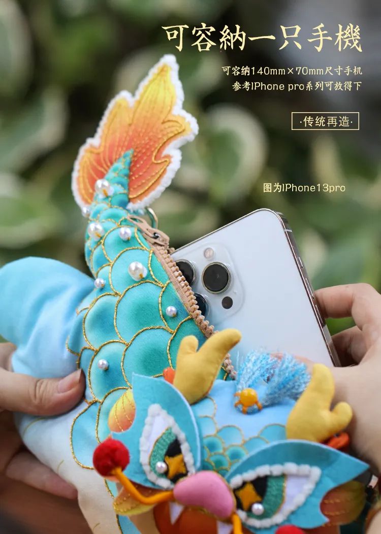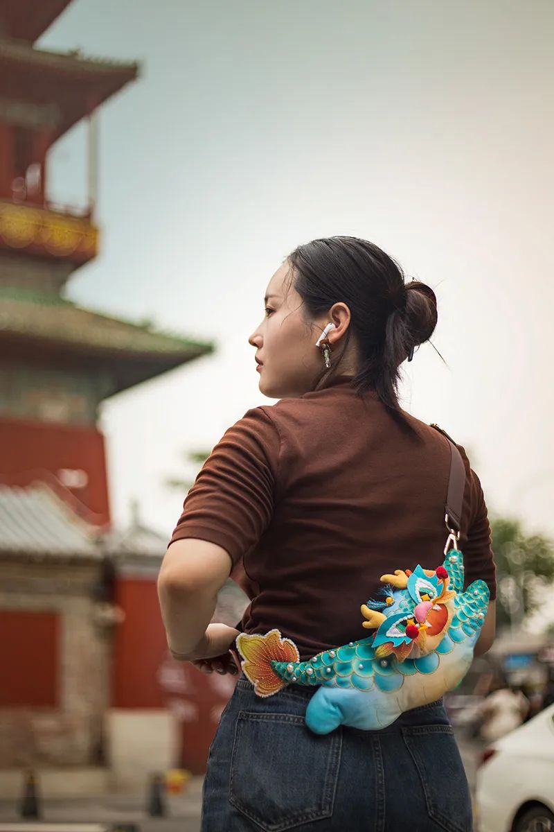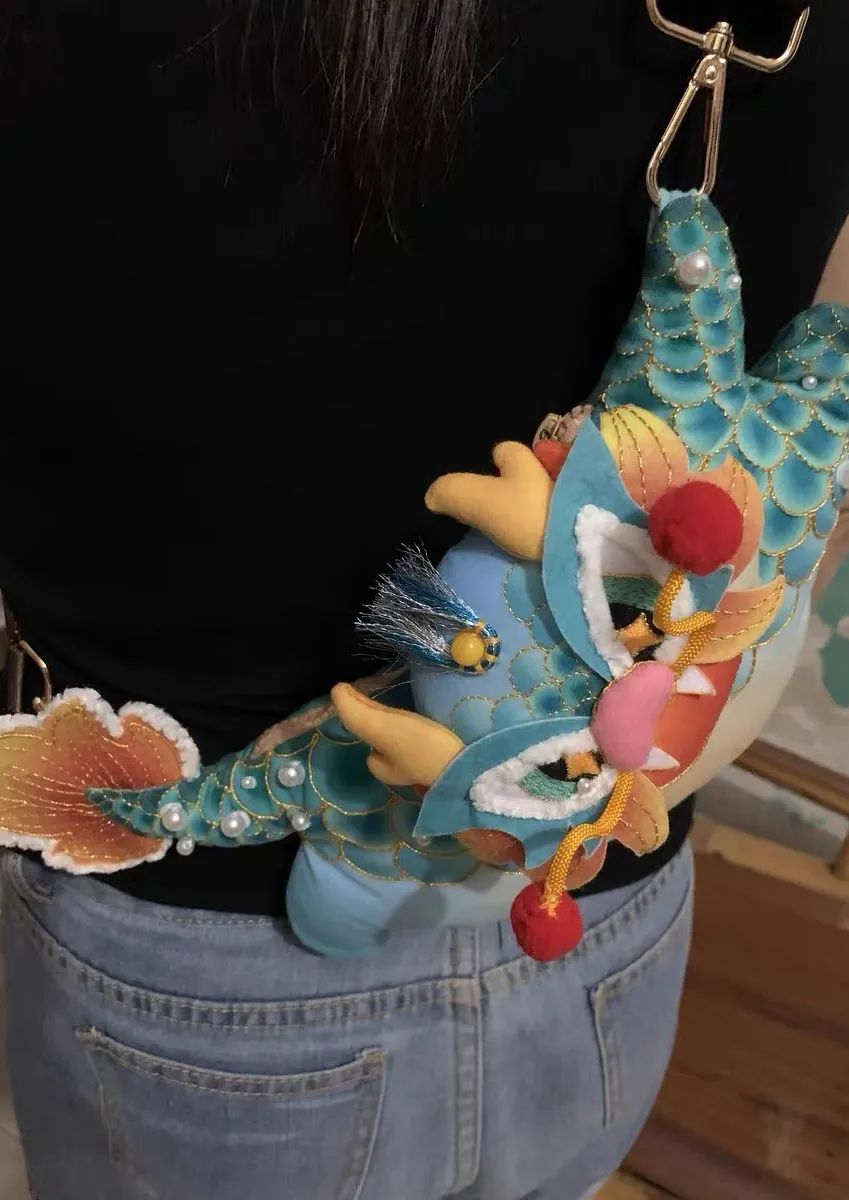 萌趣的龙头结合龙身,结合小青龙的飞扑状身体,金线勾勒龙鳞,别看它是一只包,细节里的精致感一丝不减。