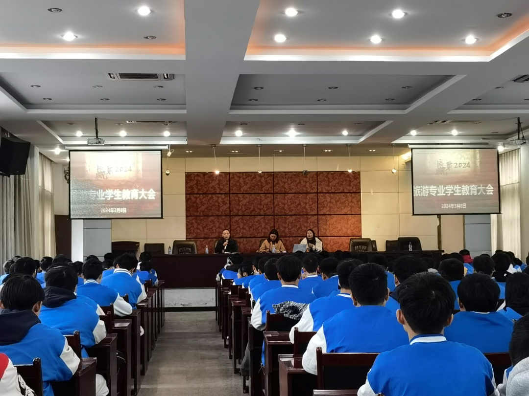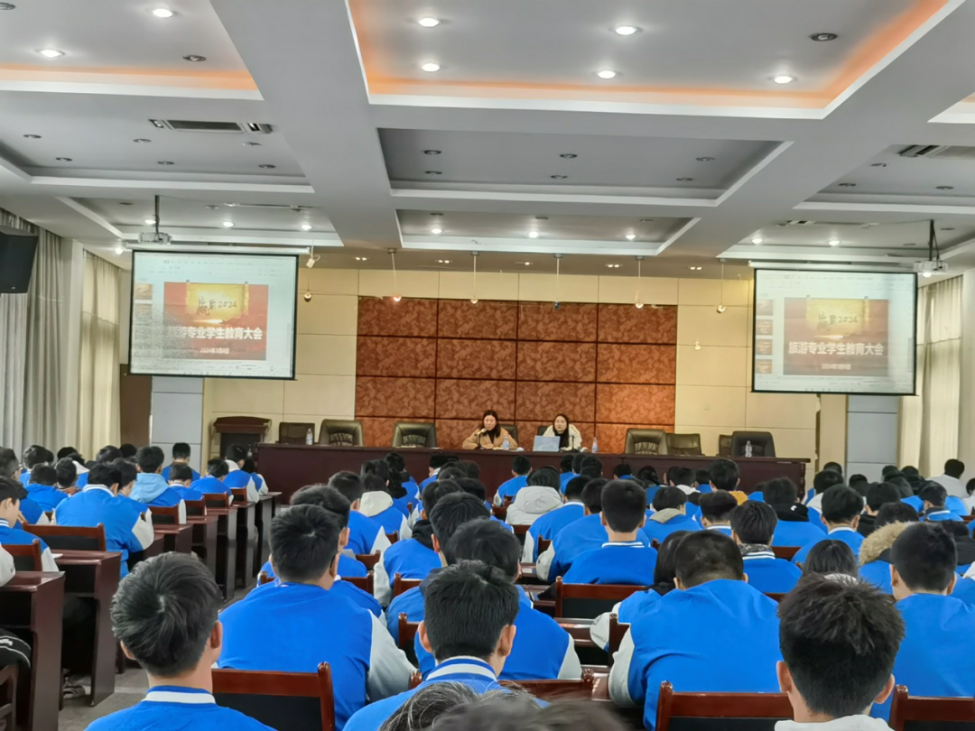 新学期孕育新希望!为帮助同学们尽快收心归位,振奋精神、凝聚共识,全力投入到学习和生活中。3月8日上午,旅游专业在教育宾馆分别召开了旅游类、餐饮类高一、高二年级学生教育大会。专业部主任、教研组长、年级组长、一二年级班主任及全体学生参加会议。会议分别由烹饪年级组长龚丽瑶、旅游年级组长王婷婷老师主持。
