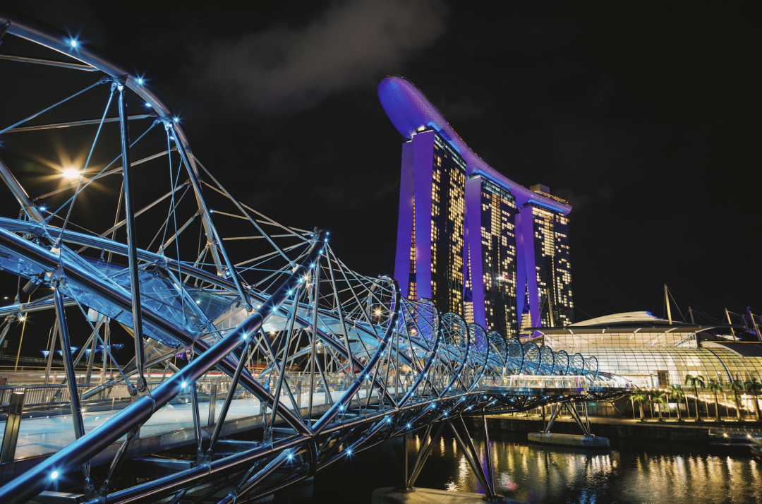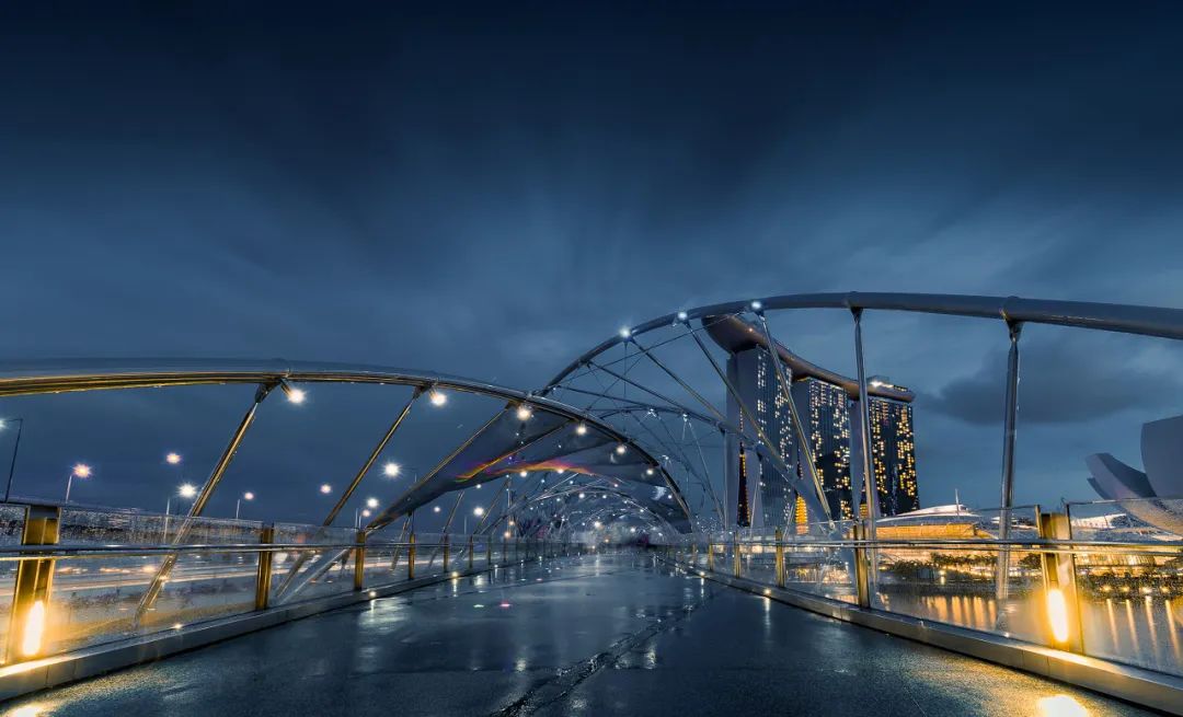 世界上首座双螺旋人行桥,一处新加坡的美丽夜景。