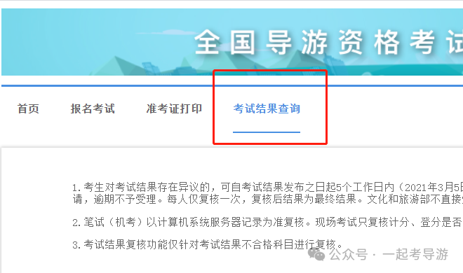 2.进入全国导游资格考试报考系统,选择所报考省份,登录后选择【考试结果查询】,考试结果上方,下载填写复核申请表,按提示送到指定地点复核。