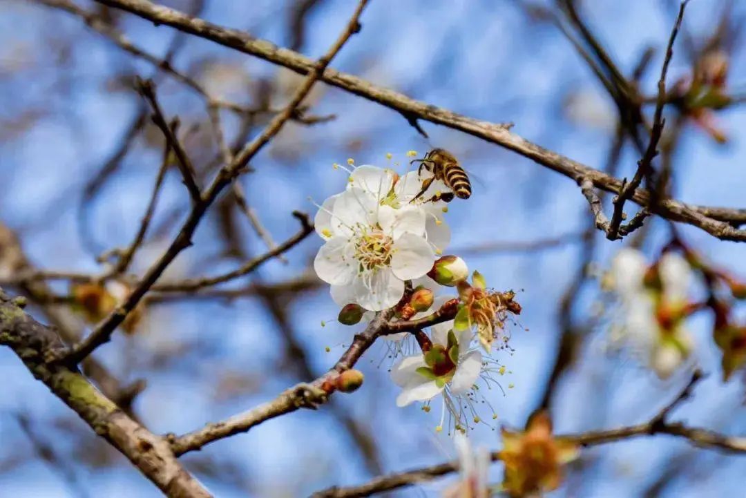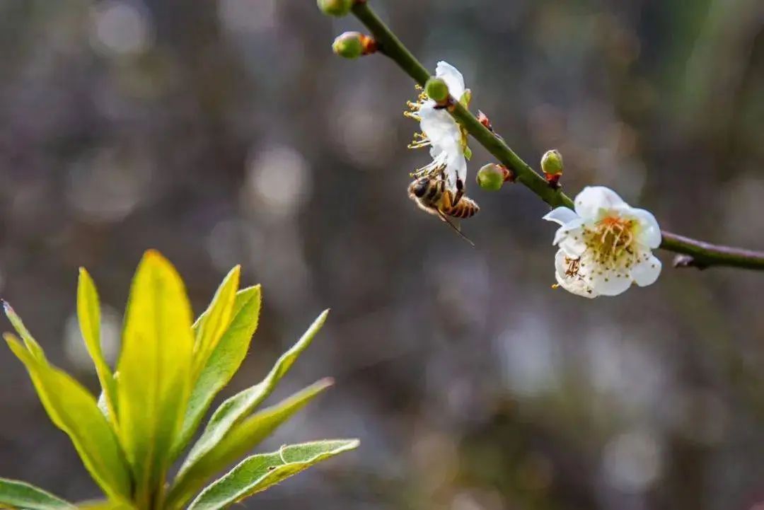 隐藏枝丫上的梅花迫不及待地出来“凑热闹”
