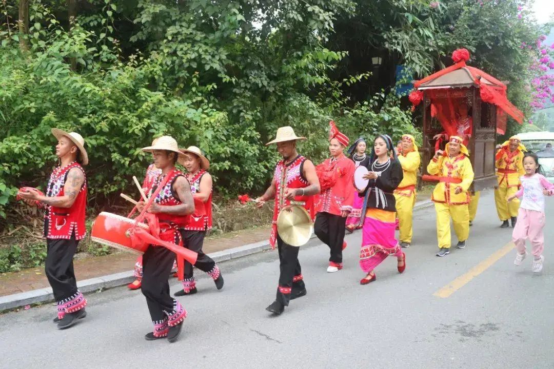 5、参加抛绣球招亲仪式、“太公”分猪肉;