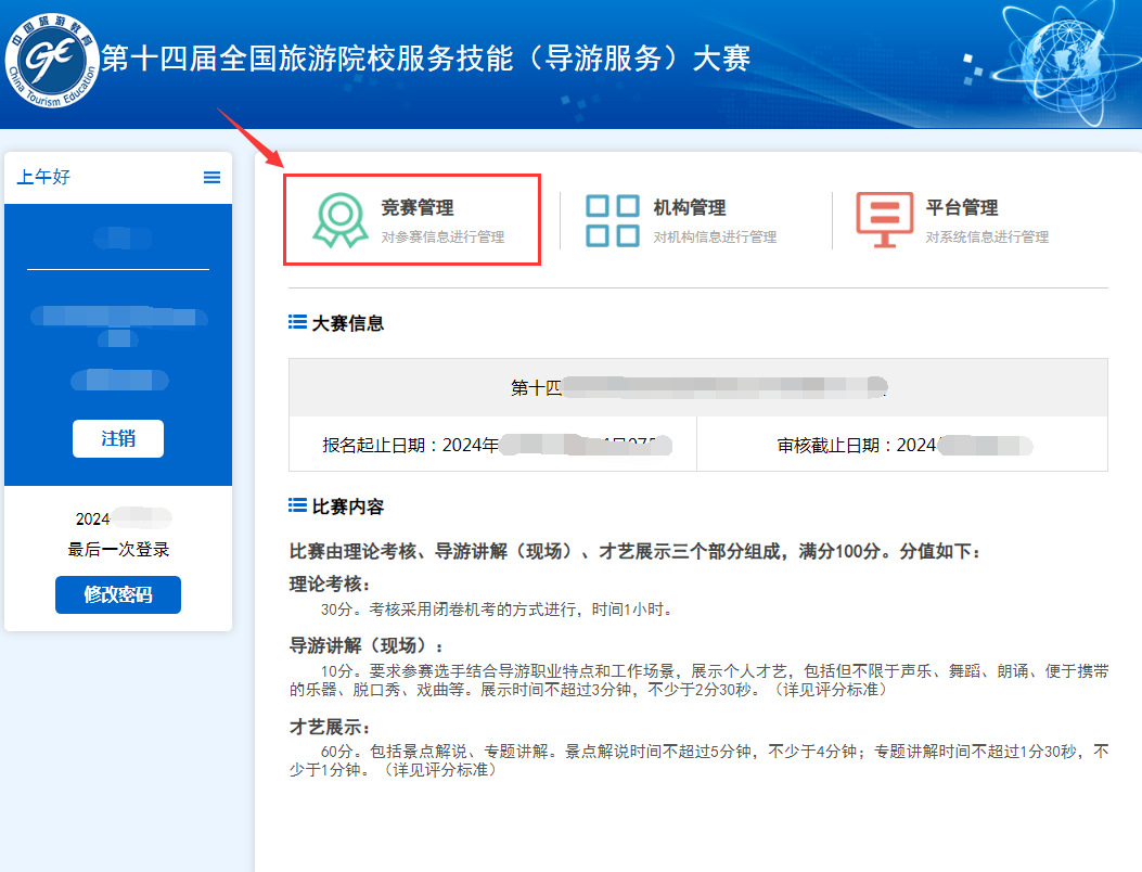 【重要】第十四届全国旅游院校服务技能(导游服务)大赛报名系统操作说明