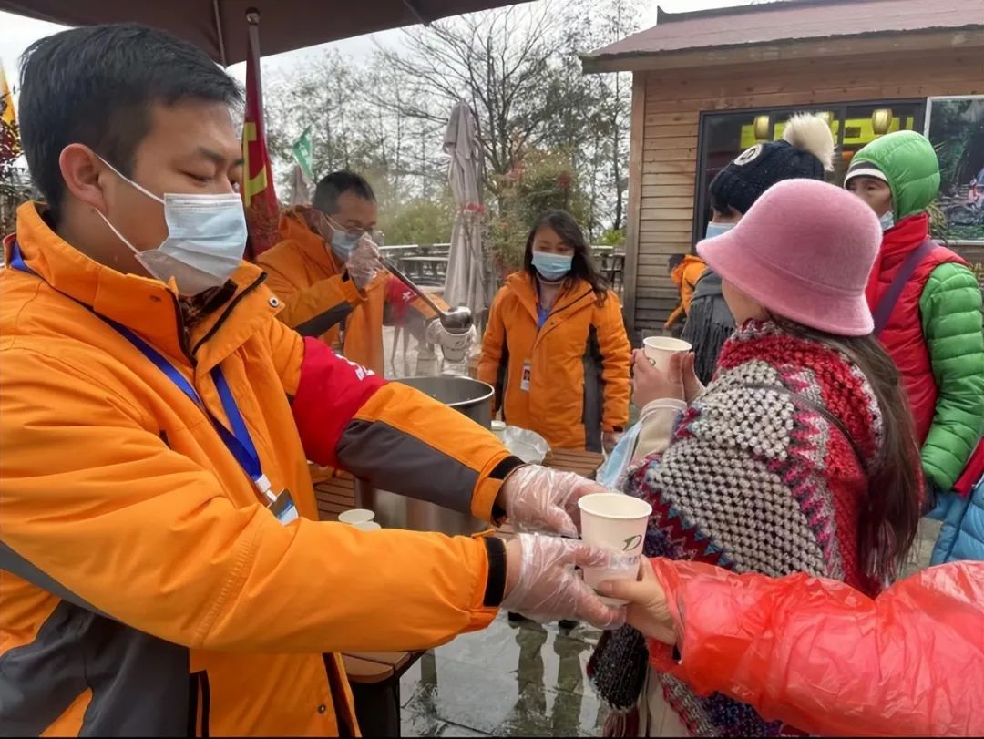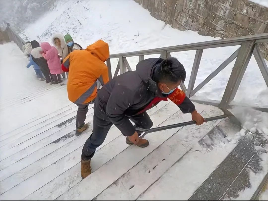 降雪后,地面湿滑,大理旅游集团索道运营管理中心工作人员及时在出入口通行道路上铺设防滑垫,并在显眼位置摆放防滑提示牌。为了给游客提供安全的观景通道,纷纷扛起铁锹扫雪除冰,时刻把游客安全放在心上。天气寒冷时,游客只要走出索道车厢,一杯杯热气腾腾的姜汤便迎面而来,化作暖气,让游客从心底感觉到温暖!