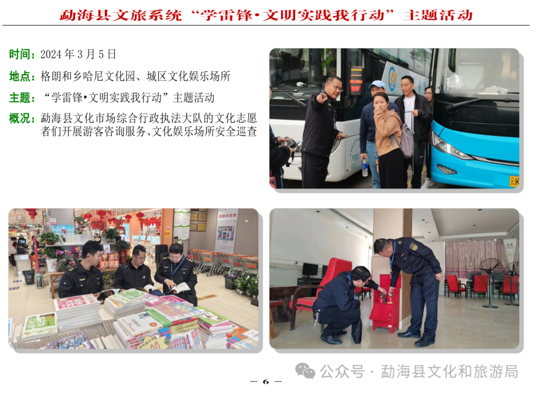 3月5日,勐海县文化和旅游局开展“学雷锋•文明实践我行动”主题活动。