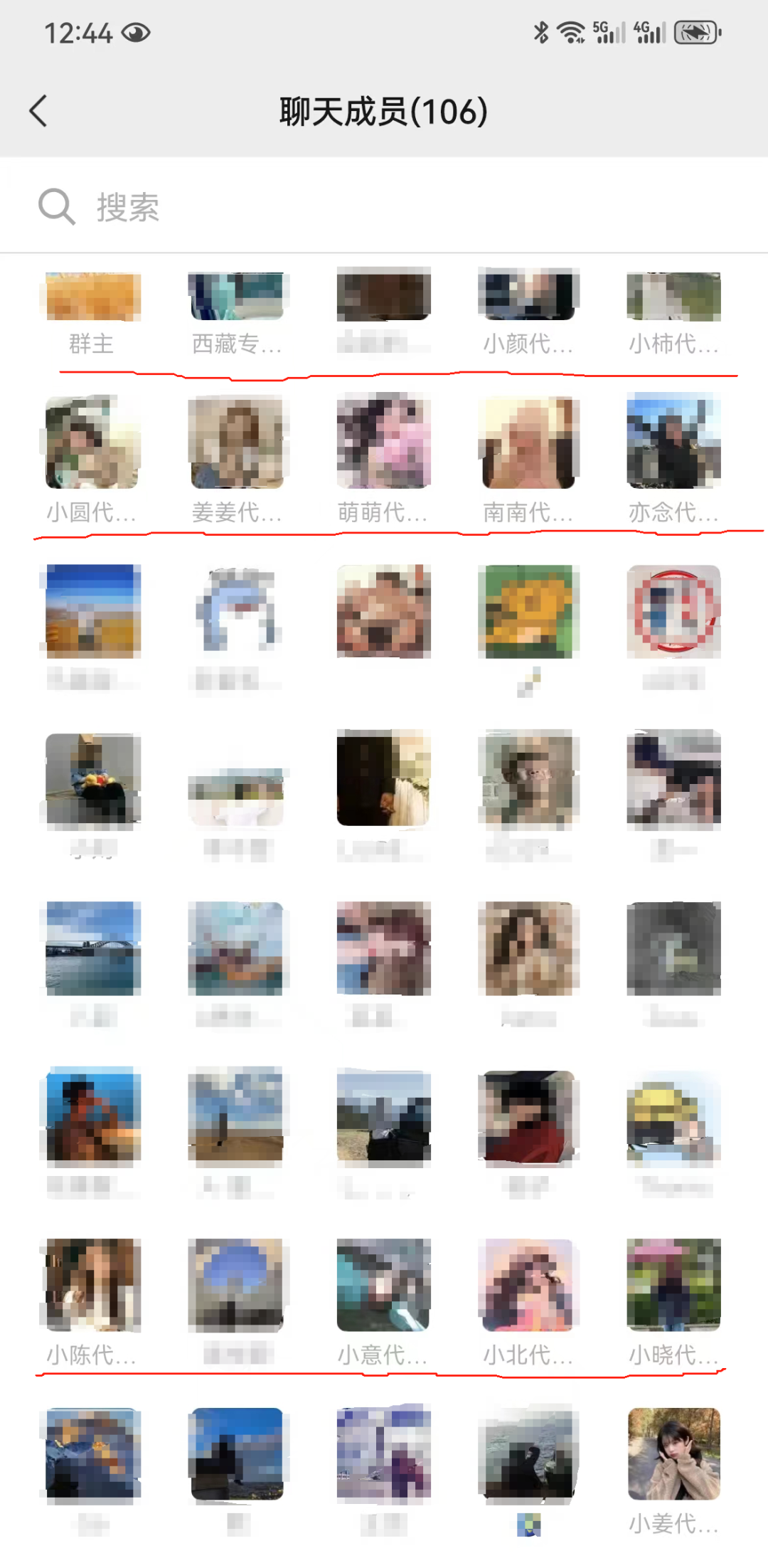 我想来都来了,于是斥资19.8元巨资进群一探究竟。好家伙,100个人的群,有几十个号ID昵称都是“XXX代找旅游搭子”,也就是拉我进群的这种专拉人头的业务号。