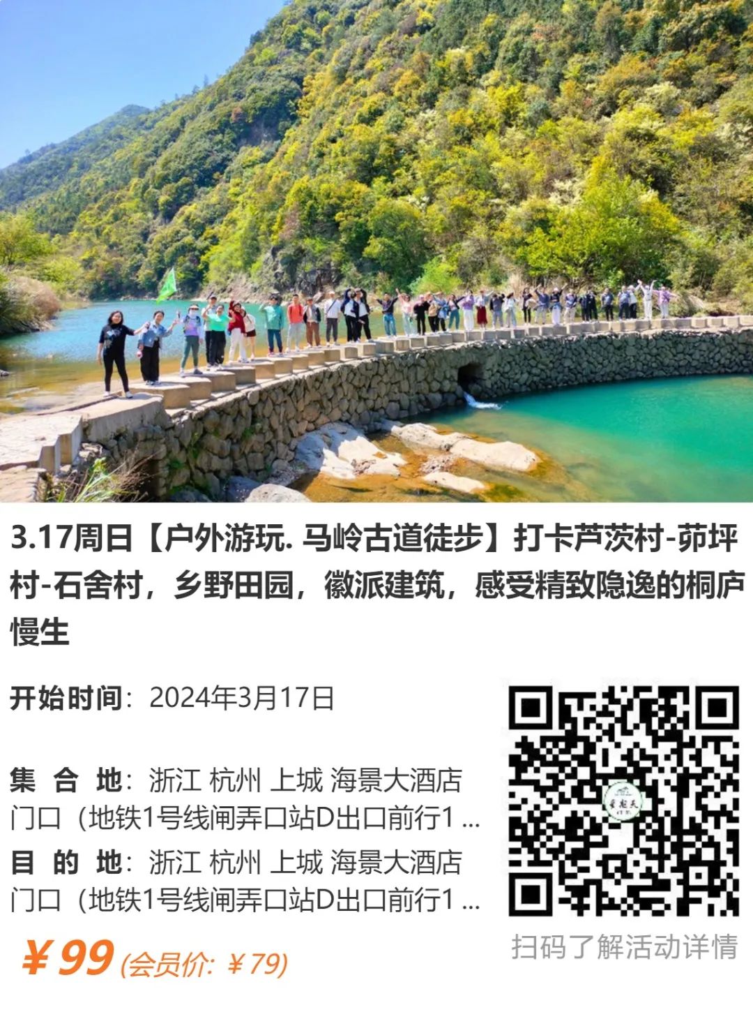 3.17 周日【户外游玩. 马岭古道徒步】打卡芦茨村-茆坪村-石舍村,乡野田园,徽派建筑,山环水抱,感受精致隐逸的桐庐慢生活