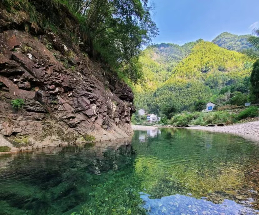 10:20左右 到达画中芦茨村,我们沿着河边小道行走,溪水潺潺,绿水青山施粉黛,富春游人款款来,携一两好友谈天说地,将生活的烦恼抛开脑后。