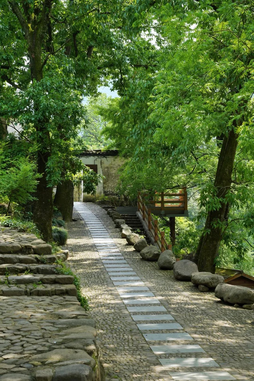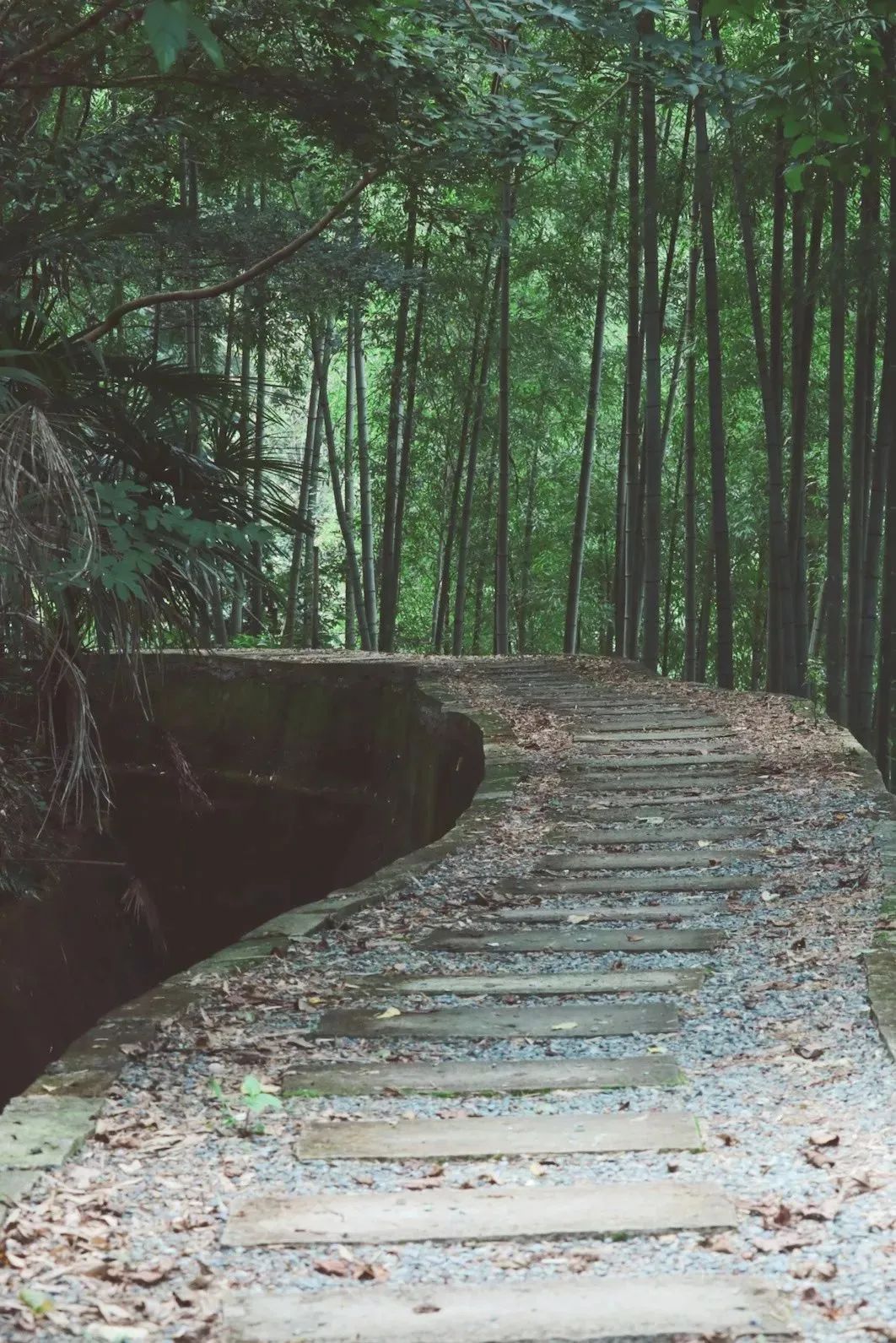 山岭步道,绿树成荫,茂林,修竹,古道里阵阵凉风拂过,传来窸窸窣窣的响声。
