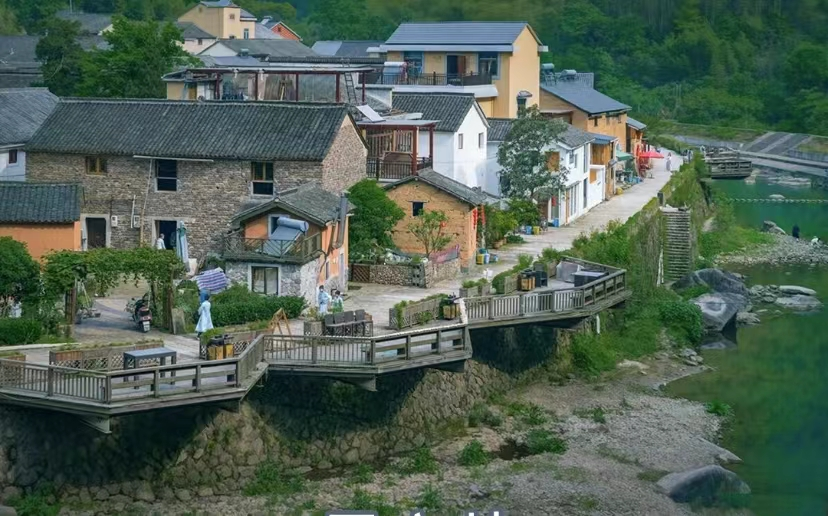 坐落于桐庐县富春江畔的芦茨村,一边是清澈的溪水,一边是苍翠的山峦。