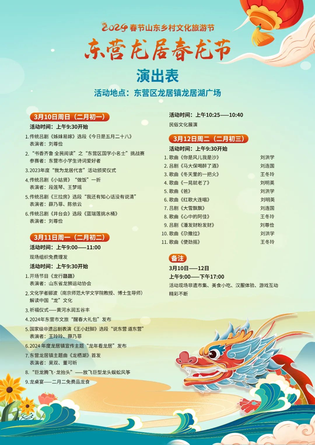 如果你恰好在3月10日—12日来到这里,就可以看到并参与首届“东营龙居春龙节”的启动仪式,欣赏精彩表演的同时参加祈福活动,放飞巨龙风筝,寄托美好心愿,感受龙居热情。