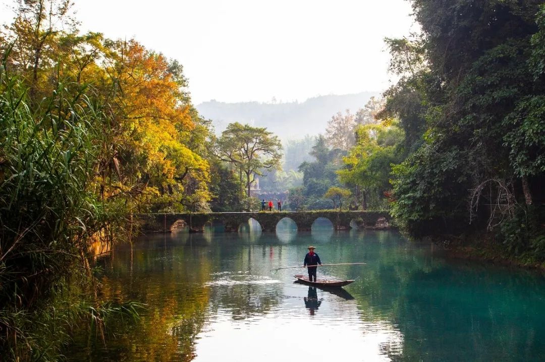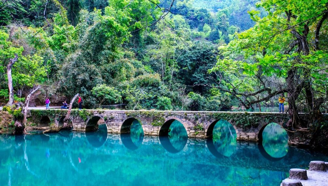 小七孔景区之名源自景区内的七孔拱桥,这座古桥为道光十五年所建,一度是广西和贵州的交界通道,踏过古桥,您就抵达广西省了。