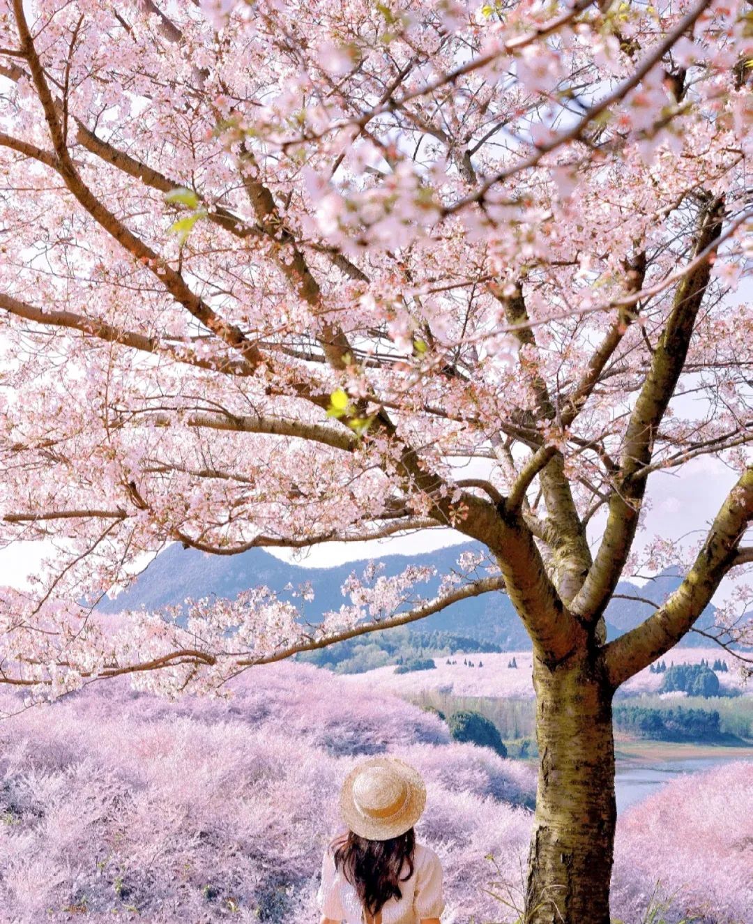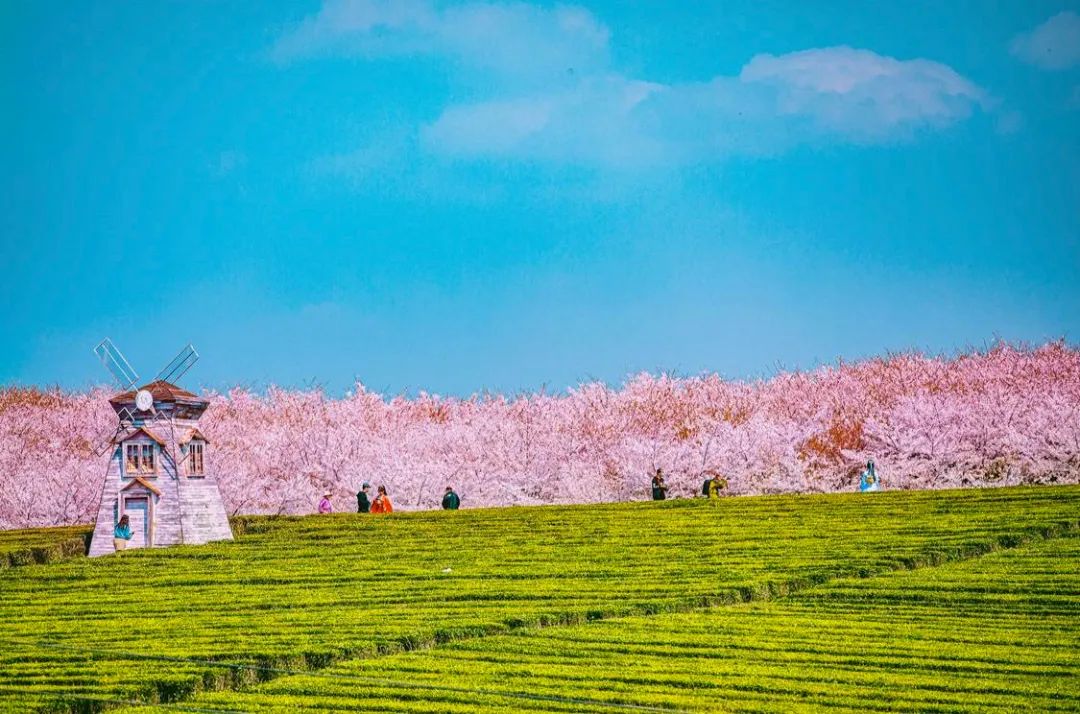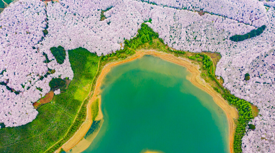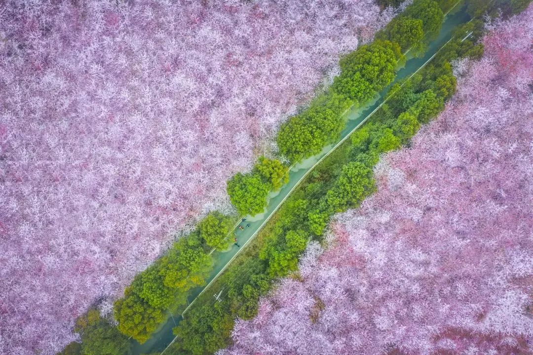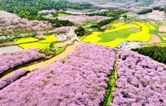 万亩樱花灿烂盛放的景象,宛若世外桃源。