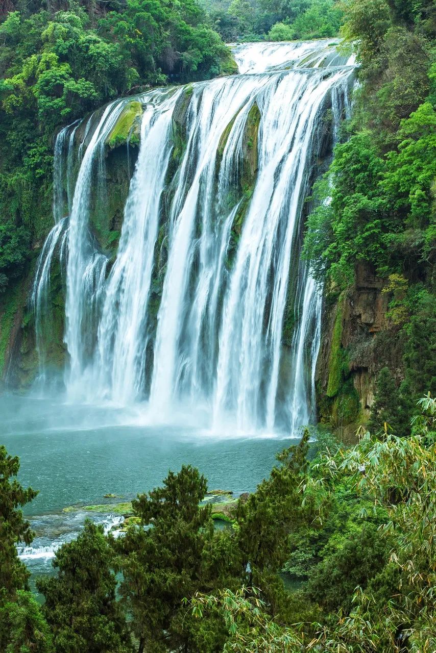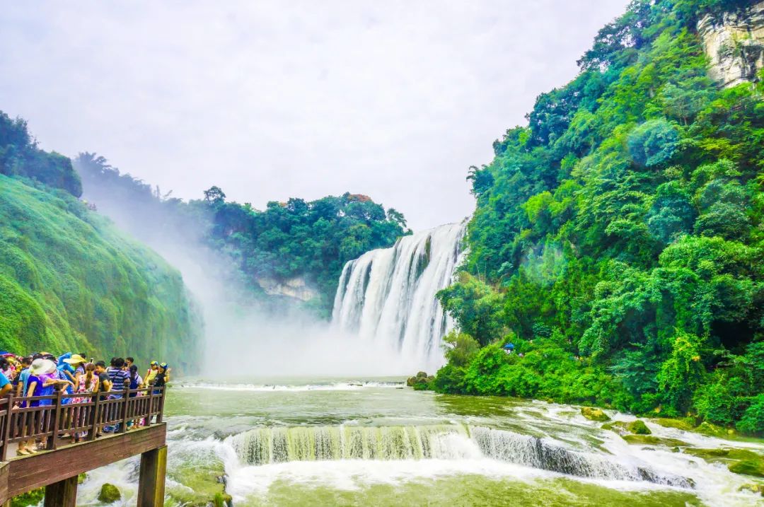 黄果树大瀑布高77.8米、宽101米,是中国最大的瀑布,也是世界著名大瀑布之一,能从上下左右前后各个方位观看瀑布景观。
