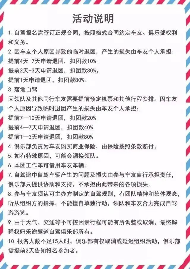 ✿游客须知:本次自驾游不限车型;