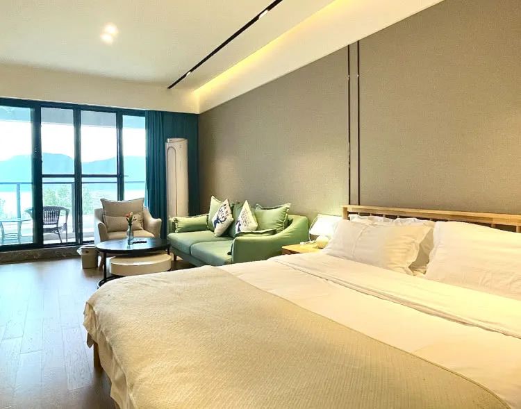 套房拥有大片的落地窗,与大自然尽可能的融为一体,全方位透明,可以走出阳台欣赏湖景,让人静下心来,感受这独处的美好。