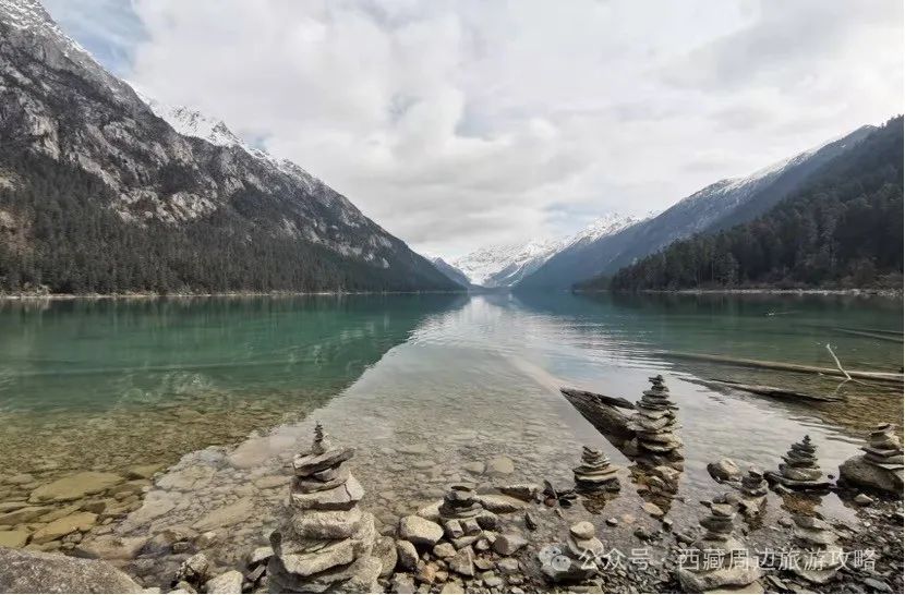 先来到的是巴松措景区内到达结巴村,然后驱车前往新措,新措是尚未被旅游开发的湖泊,鲜少有人涉足,车辆只能抵达至湖泊三公里处的桑通牧场,徒步沿途欣赏美景缓缓而行,自是绝佳。走在原始森林幽静的小道上,满目苍翠,厚厚的苔藓覆盖了一切,融合在密林之中,湖的尽头就是雪山与冰川。