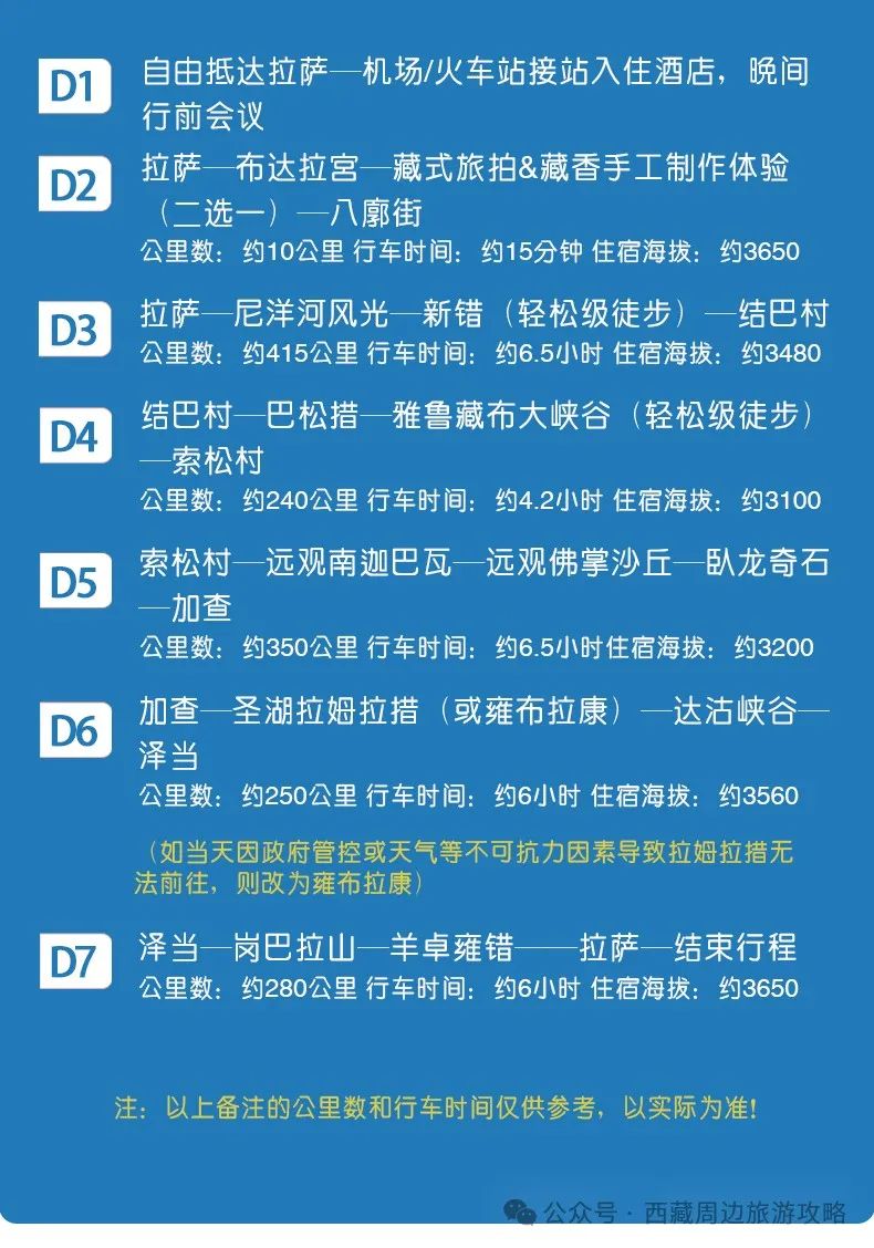特别说明,如当天因政府管控或天气等不可抗力因素,雍布拉康替代拉姆拉措。