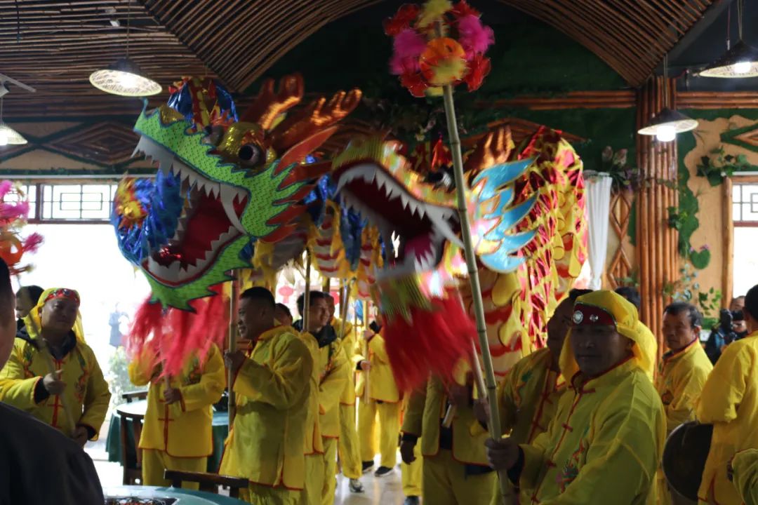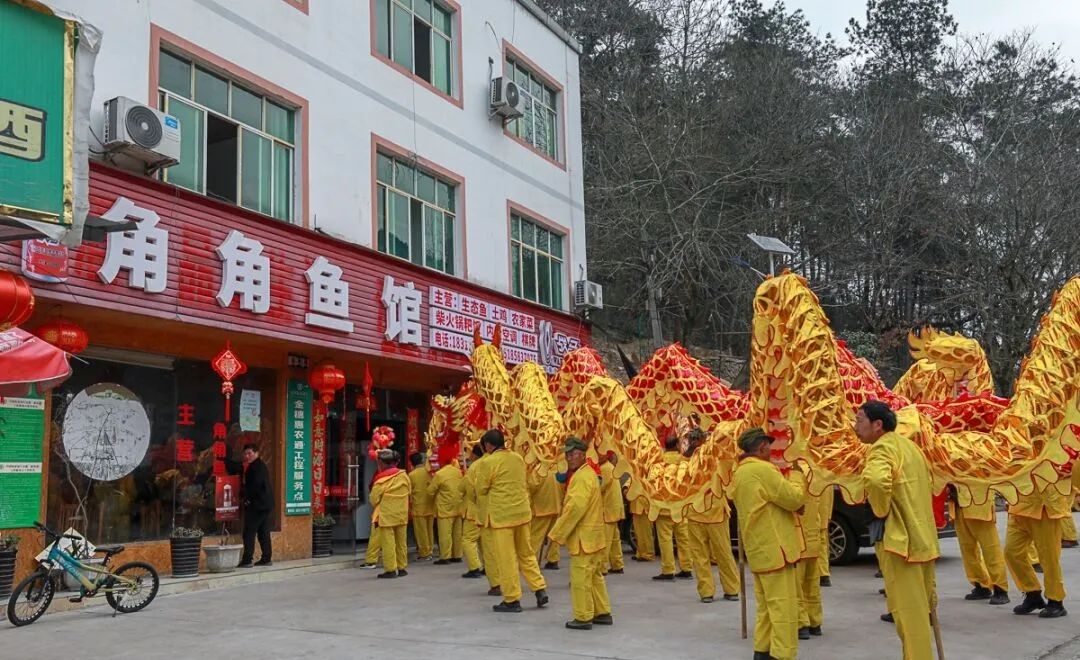 当天早上,九龙村龙灯队舞着九条龙到辖区各旅游企业、店铺纳祥祈福,祝福各店铺、企业在新的一年生意兴隆。