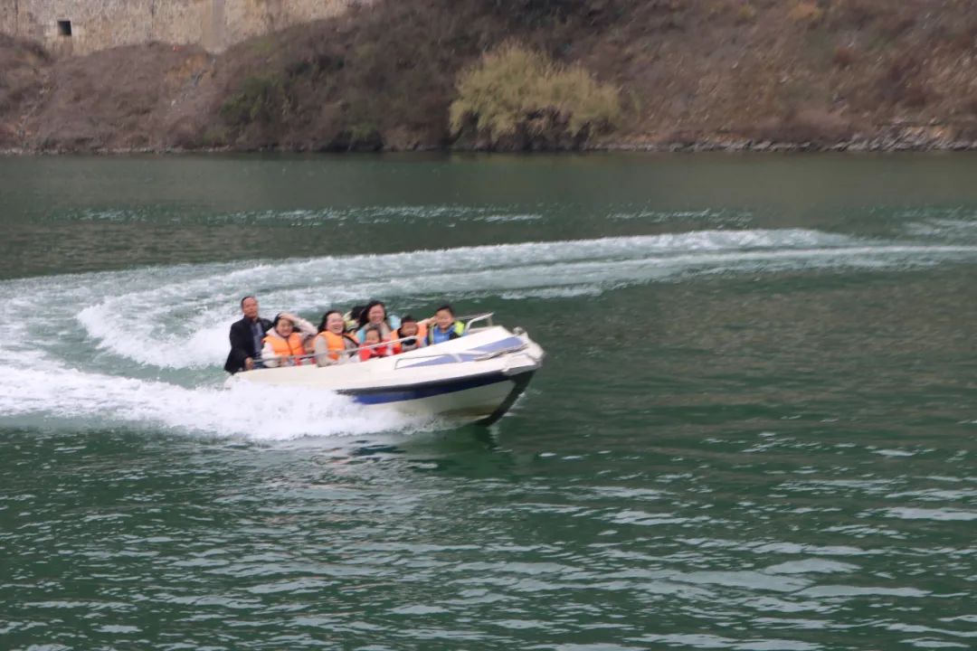 当天,众多游客游玩了九龙洞、体验了温泉、体验了露营、坐快艇游锦江。