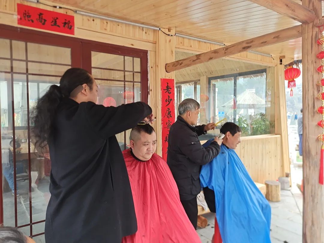 接着,举办“剃龙头”活动,由理发师免费为游客剃头理发,寓意在新的一年里红运当头、福星高照。