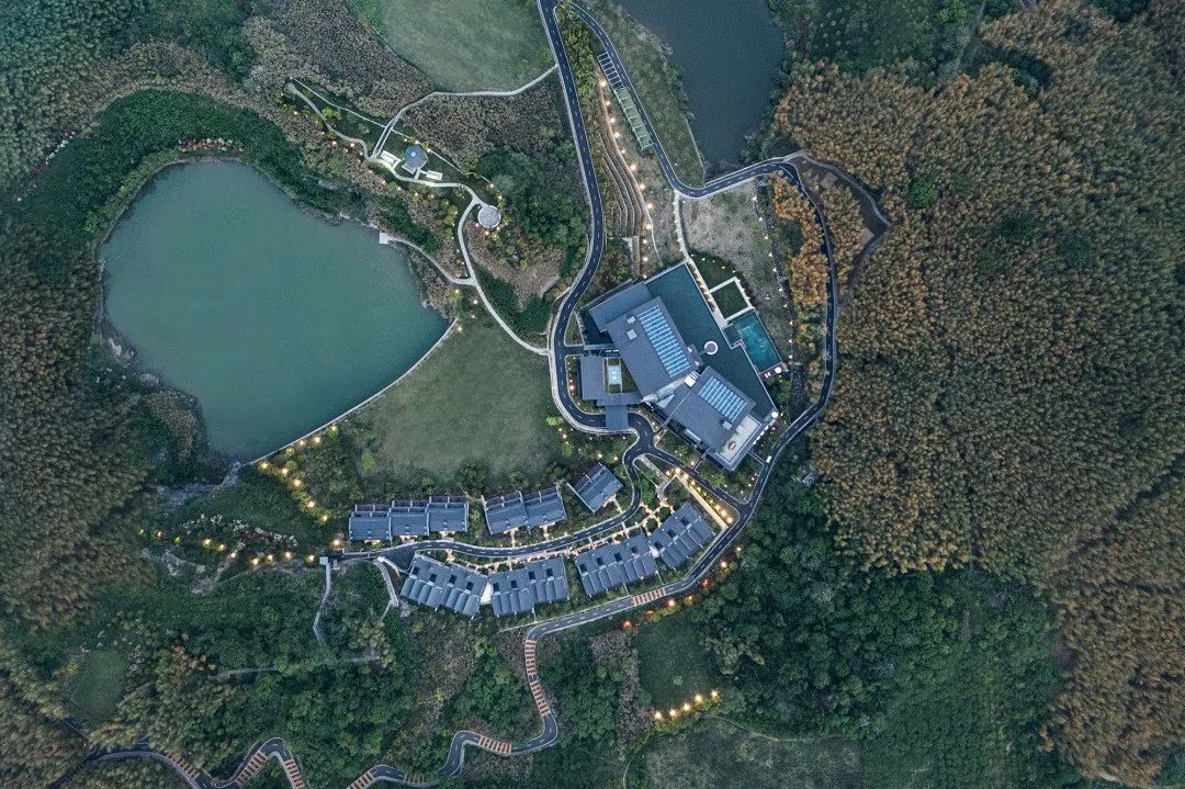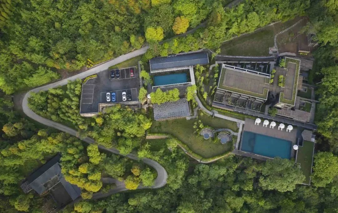 在山林掩映之下,几栋依山坡地形起伏的特色建筑,成为了在青城山旅途中不得不去的终点——路之绿谷度假酒店。