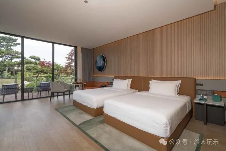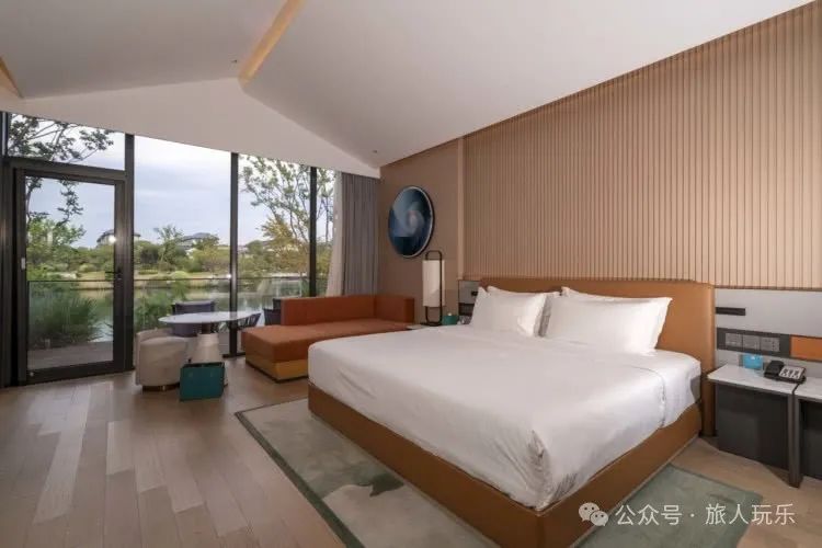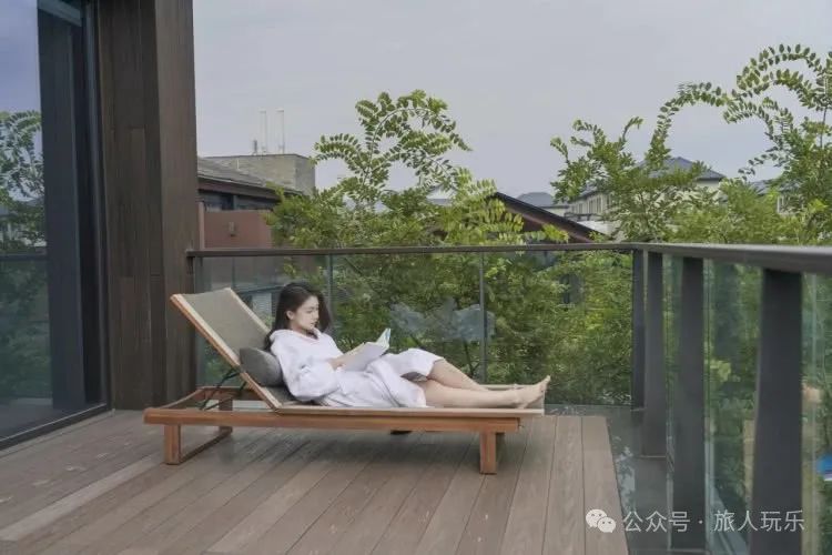 将园林之景融入到酒店客房里,全景落地窗是一个很好的载体,自带露台,可不出房门就能赏无边园林风景。