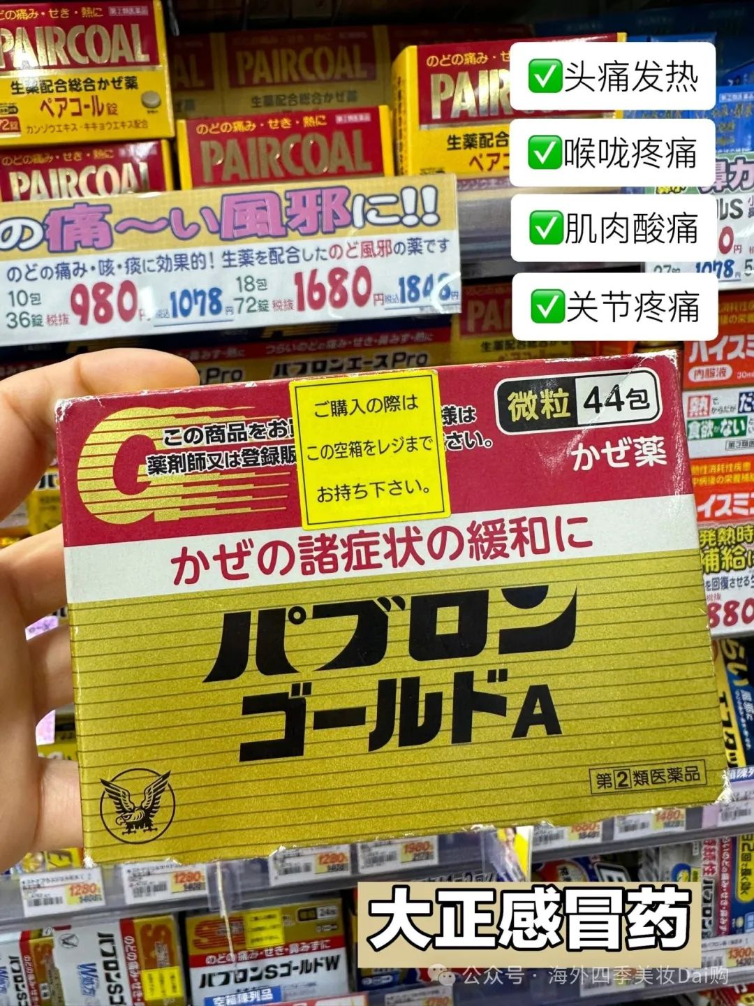 首先是日本个体正感冒YAO,这款YAO物能有效缓解感冒引起的各种症状,如头痛、发热、鼻塞、鼻涕、咽痛和止咳等,尽管它的味道相当苦涩,但在感冒初期服用一包能带来显著的效果,服用方法非常简单,直接将其倒入口中,再用温水或水送服。