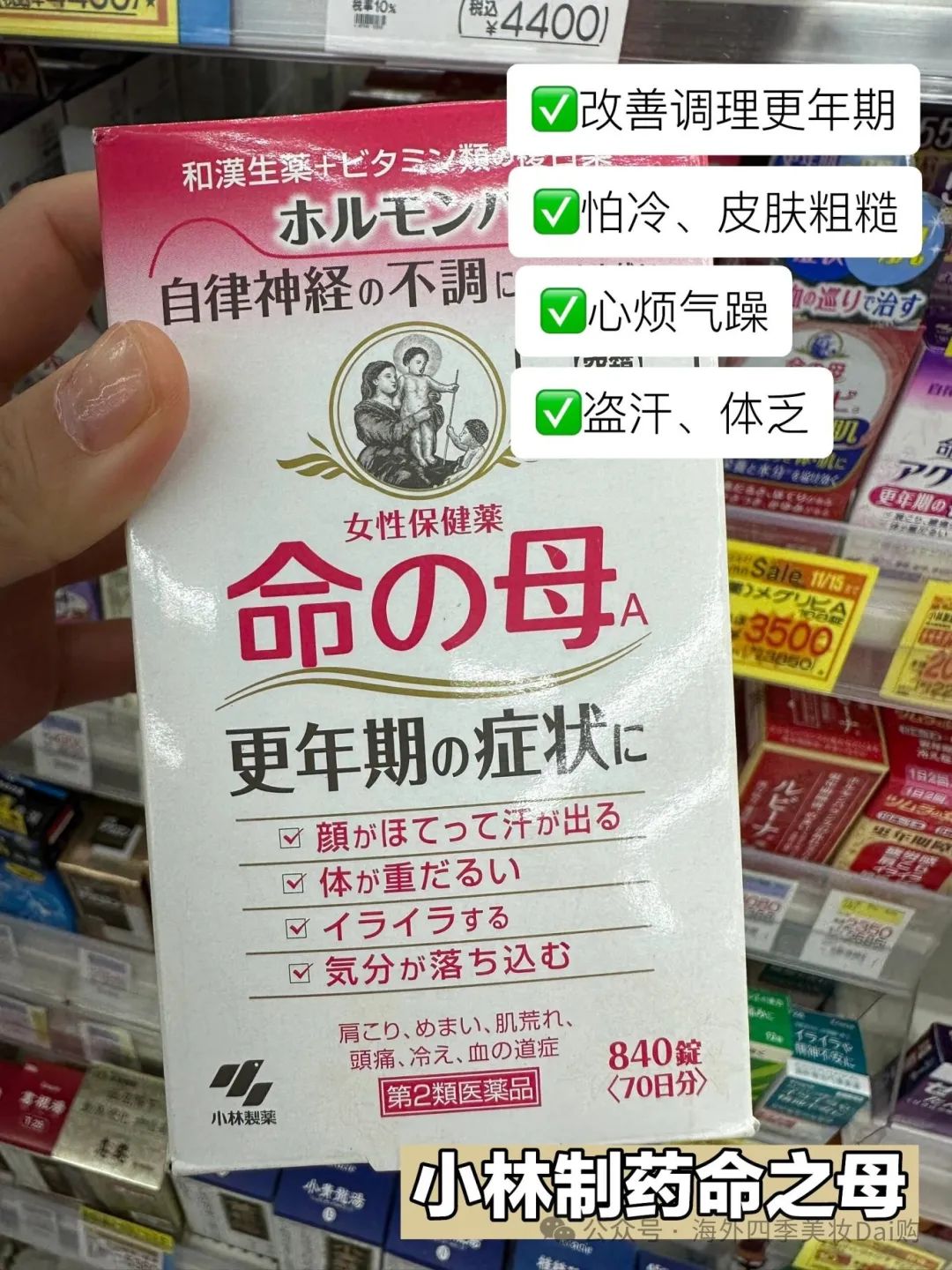 狮王眼YAO水是针对老年人的一款产品,它不含防腐剂,适用于那些因长时间用眼或眼疲劳导致视物模糊的人,小林制YAO的命之母则是一款以13味中YAO为主,配合维生素卵磷脂等成分的YAO物,旨在改善女性因更年期内分泌失调而出现的各种症状。
