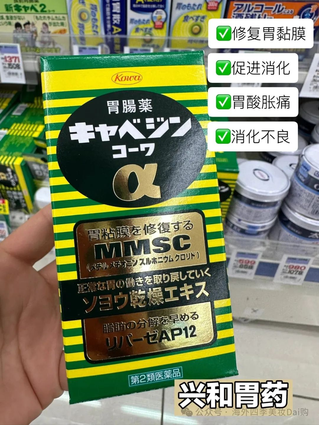 接下来,我们要介绍的是具有140年以上历史的太田胃散,这是一款日本家喻户晓的胃YAO,非常适合那些胃胀、暴饮暴食或饮酒后感到不适的人,紧随其后的是兴和胃YAO,这款YAO物的主要功能是修复胃黏膜,从而改善胃部功能。