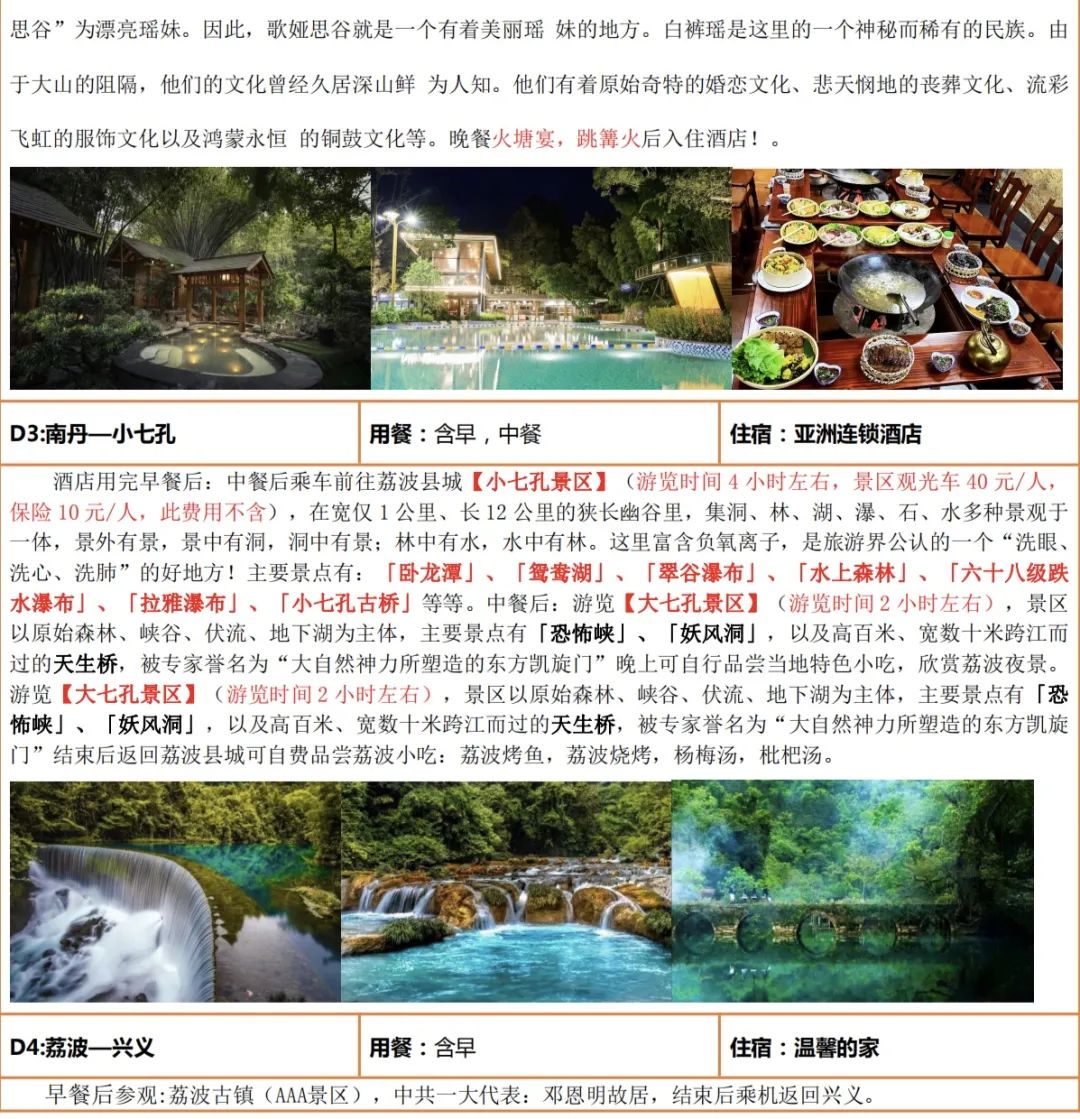 门票:包含大小七孔、歌娅思谷、南丹矿物质温泉度假区首道门票;