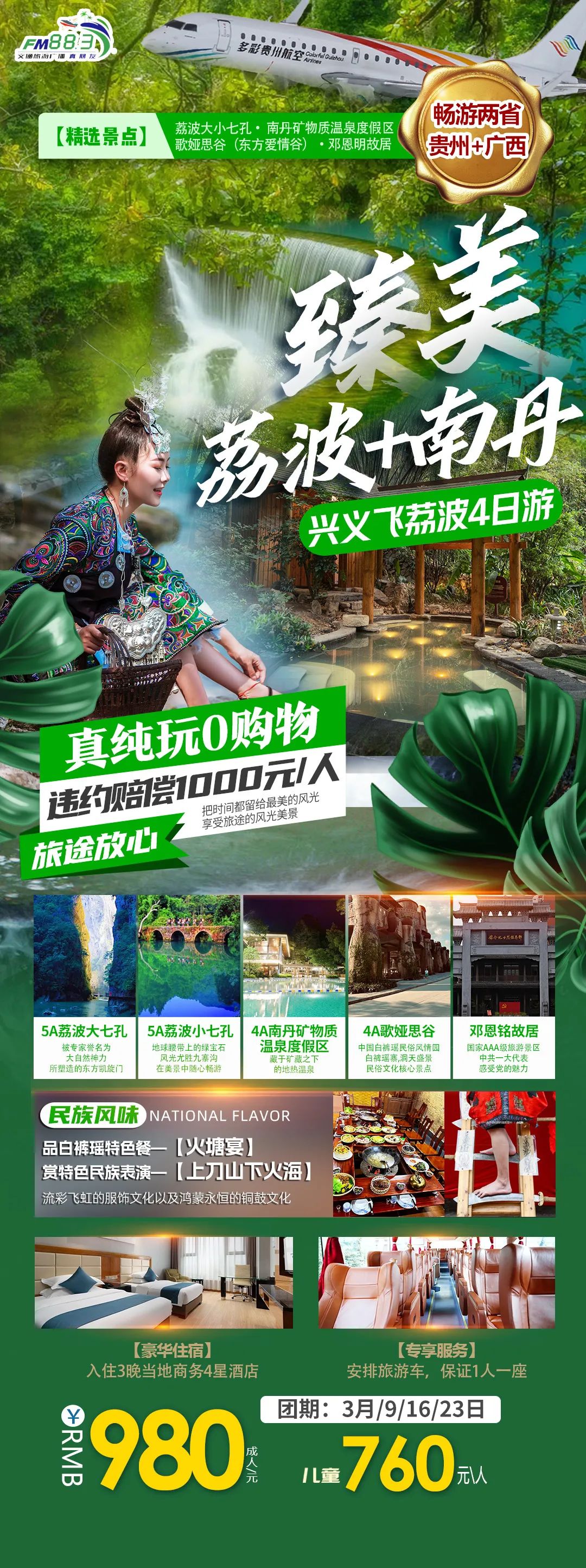 FM88.3旅游|不到1000元,四天三晚畅玩荔波大小七孔+广西南丹温泉