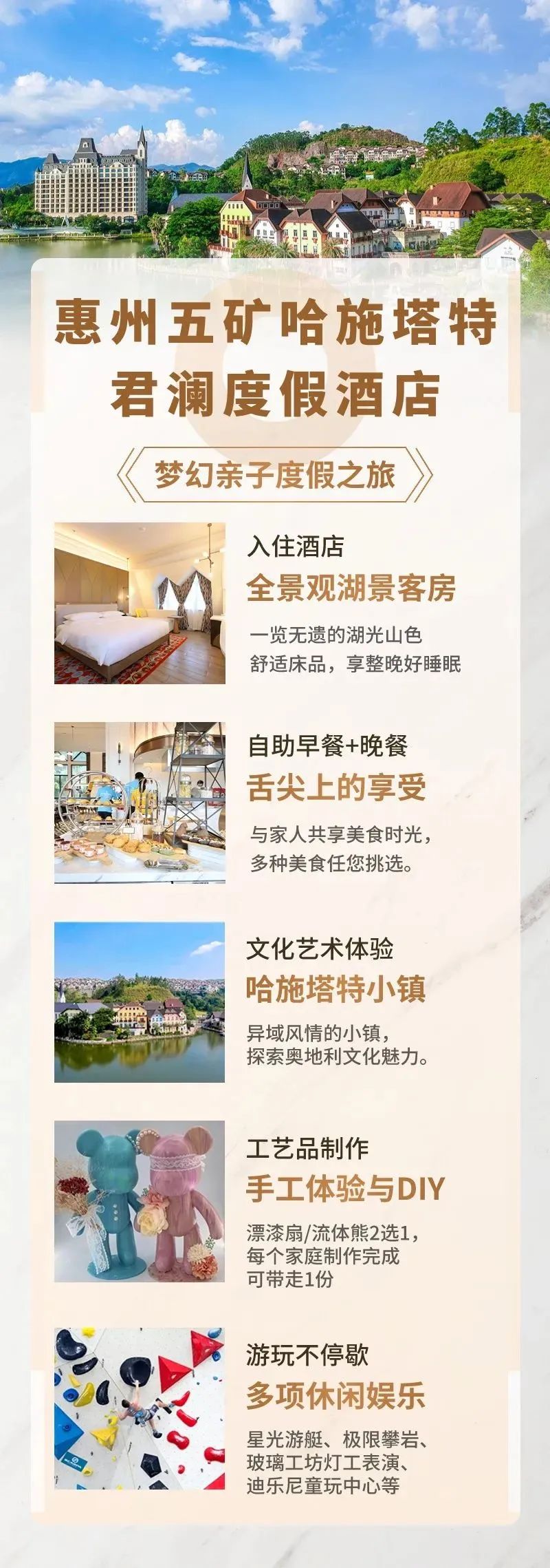 休闲亲子游!年度大促!赠早晚餐!499元入住惠州五矿哈施塔特君澜度假酒店,双早双晚+景区门票,吃住玩一价全包