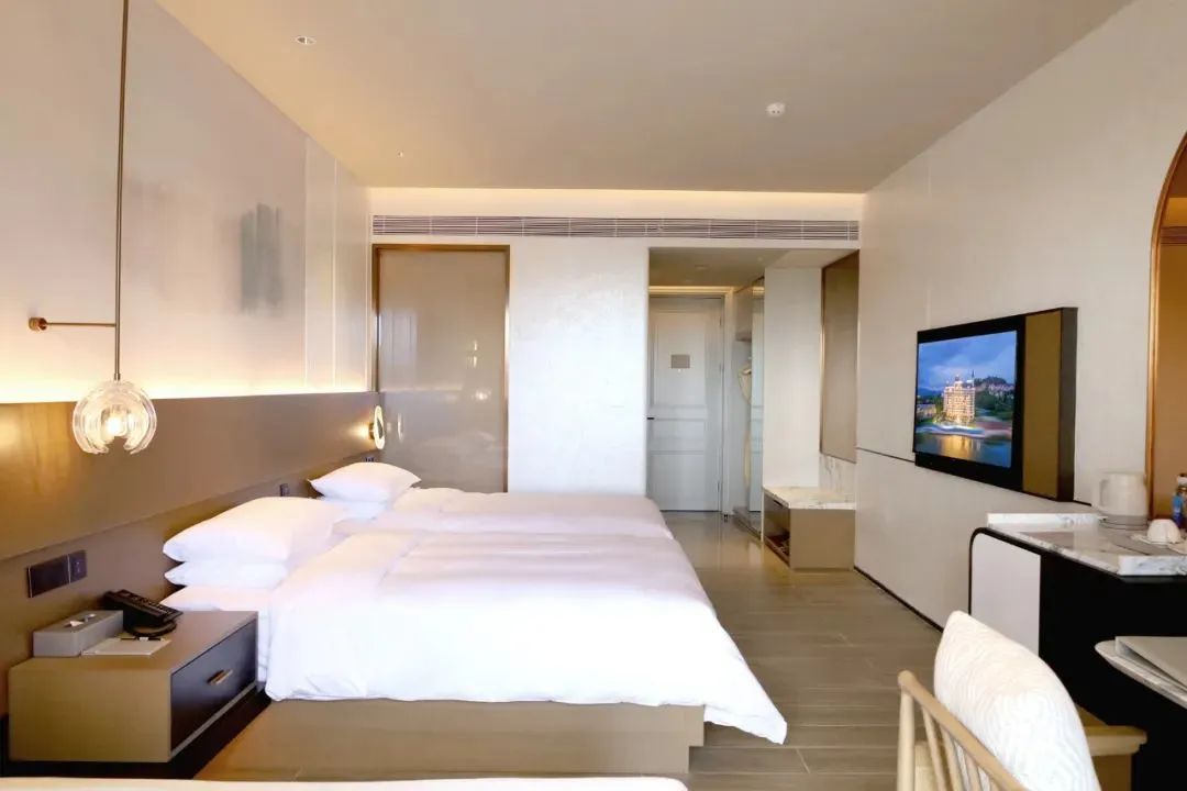 3、全景观湖景大床房:1张1.8米床;全景观湖景双床房:2张1.3米床