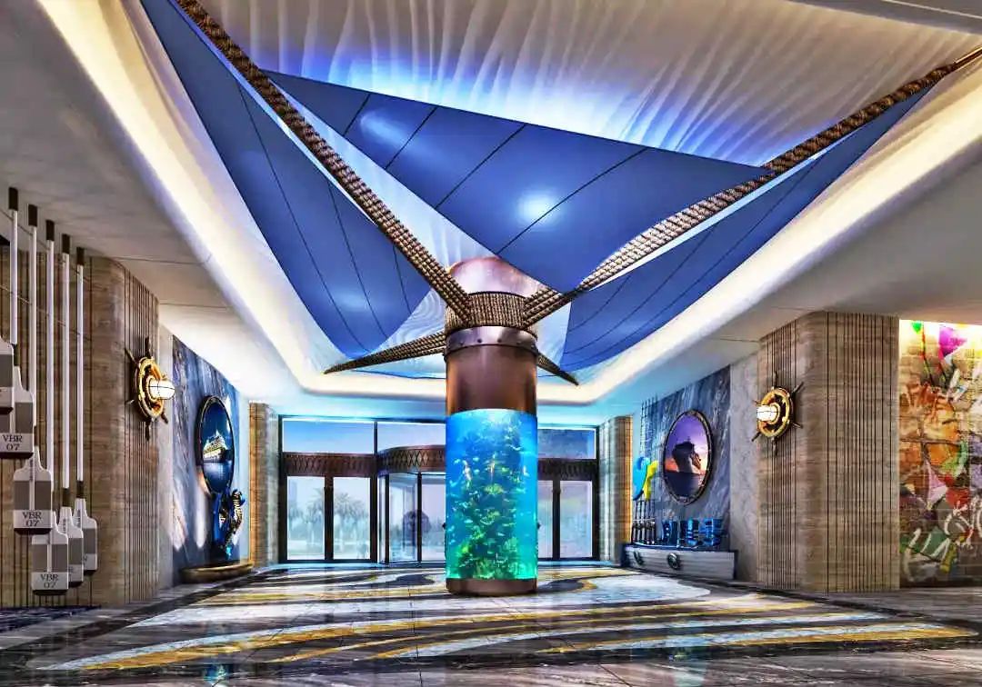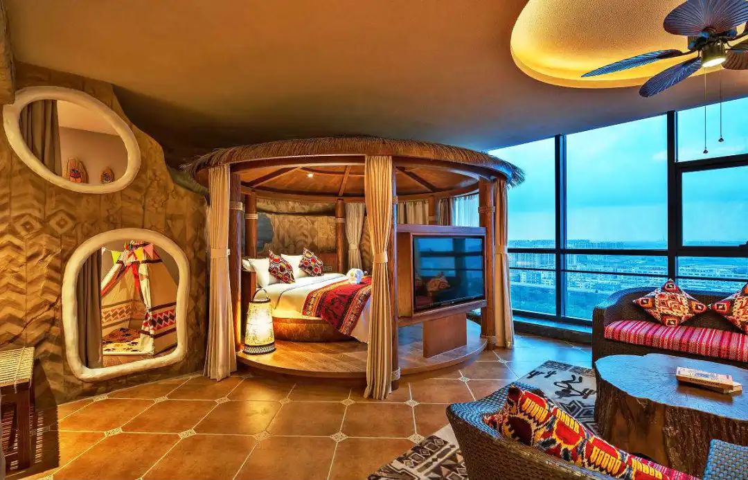 常州环球港邮轮酒店,中国十大亲子主题酒店,现已成为常州重要的地标,各项标准超越五星级酒店,从店门开始,就已经震撼你的心灵,大堂配备直径3米的水族馆,属全国首创。所有楼层进口处,以3D模拟海底邮轮窗口,在一瞬间抓住了你。酒店每个房间都有各种主题风格,你是酋长还是公主,是商务人士还是家庭亲子,都妥妥的掌控你。光儿童床,就有贝壳的、游艇的、帐篷的。。。。。,让你感觉到酒店的神奇。
