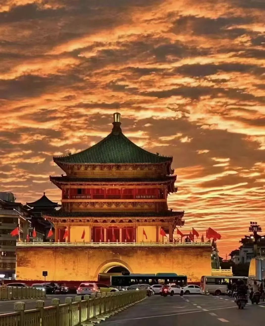 西安钟楼位于西安市中心,明城墙内东西南北四条大街的交汇处,是中国现存钟楼中形制最大、保存最完整的一座。建于明太祖洪武十七年(1384年),初建于今广济街口,与鼓楼相对,明神宗万历十年(1582年)整体迁移于今址。