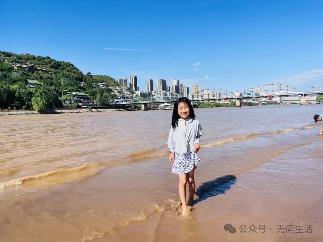 在这片河滩上,和黄河有了一个亲密接触。此时已是7月,正值盛夏,而黄河的河水却有着刺骨的寒意,就是这样的下午,在映着蓝天和白塔山的河水中,大家肆意泼洒,扔着石子,奔跑跳跃。
