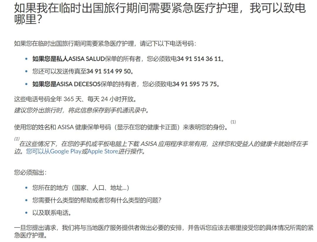 最后,当大家出门在外遇到突发状况时,不要慌张,如果你是Asisa保险的客户就可以按照图片上的方法拨打相应地电话寻求必要的帮助!